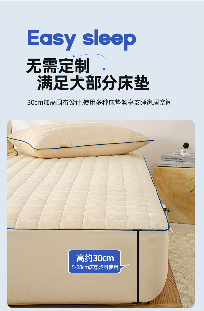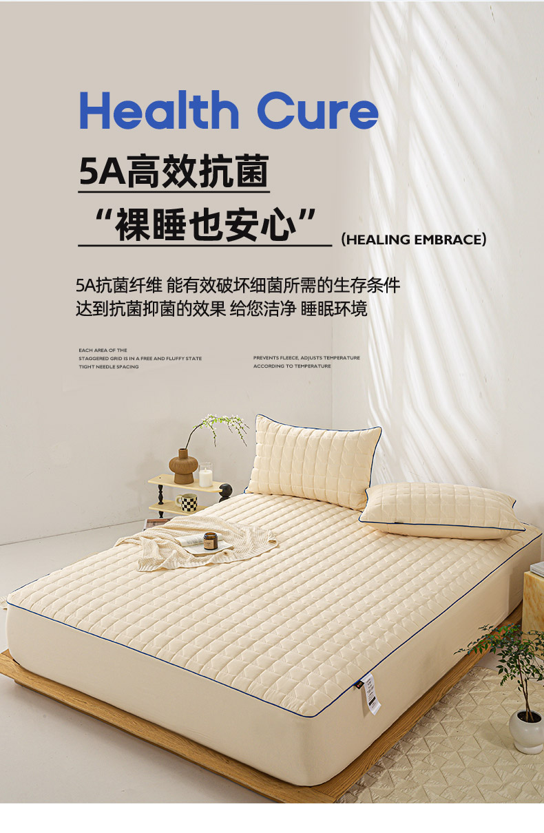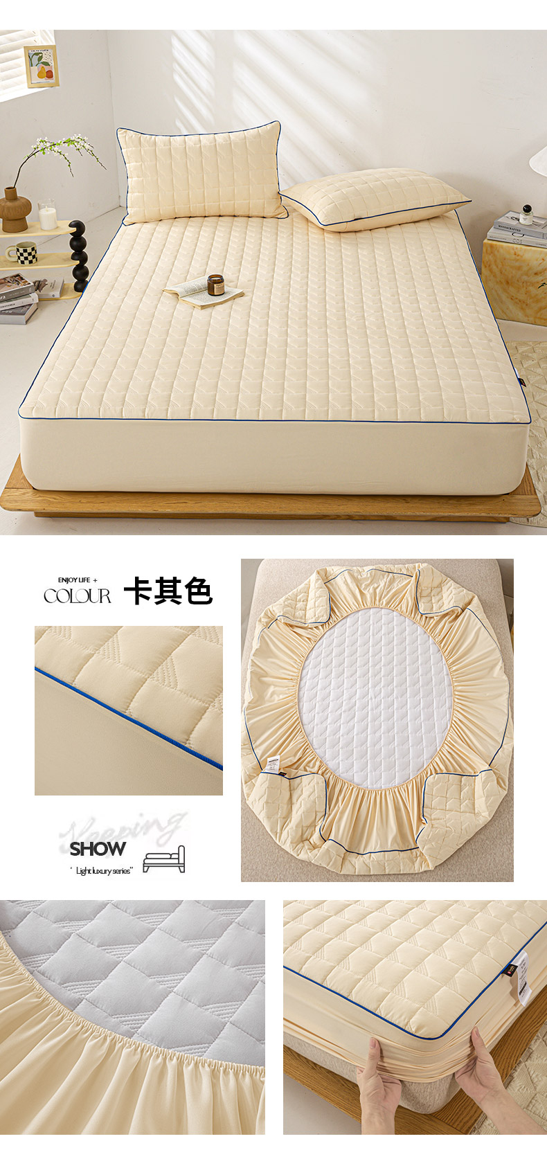 (总)好眠好梦家纺 2025新款全棉50S抗菌防螨夹棉防水床笠-无限之光系列,白色,粉色,卡其,深灰,天蓝,烟灰