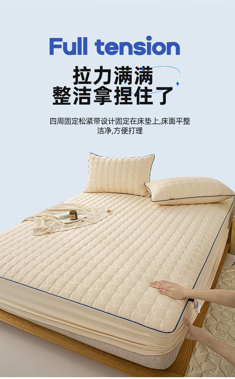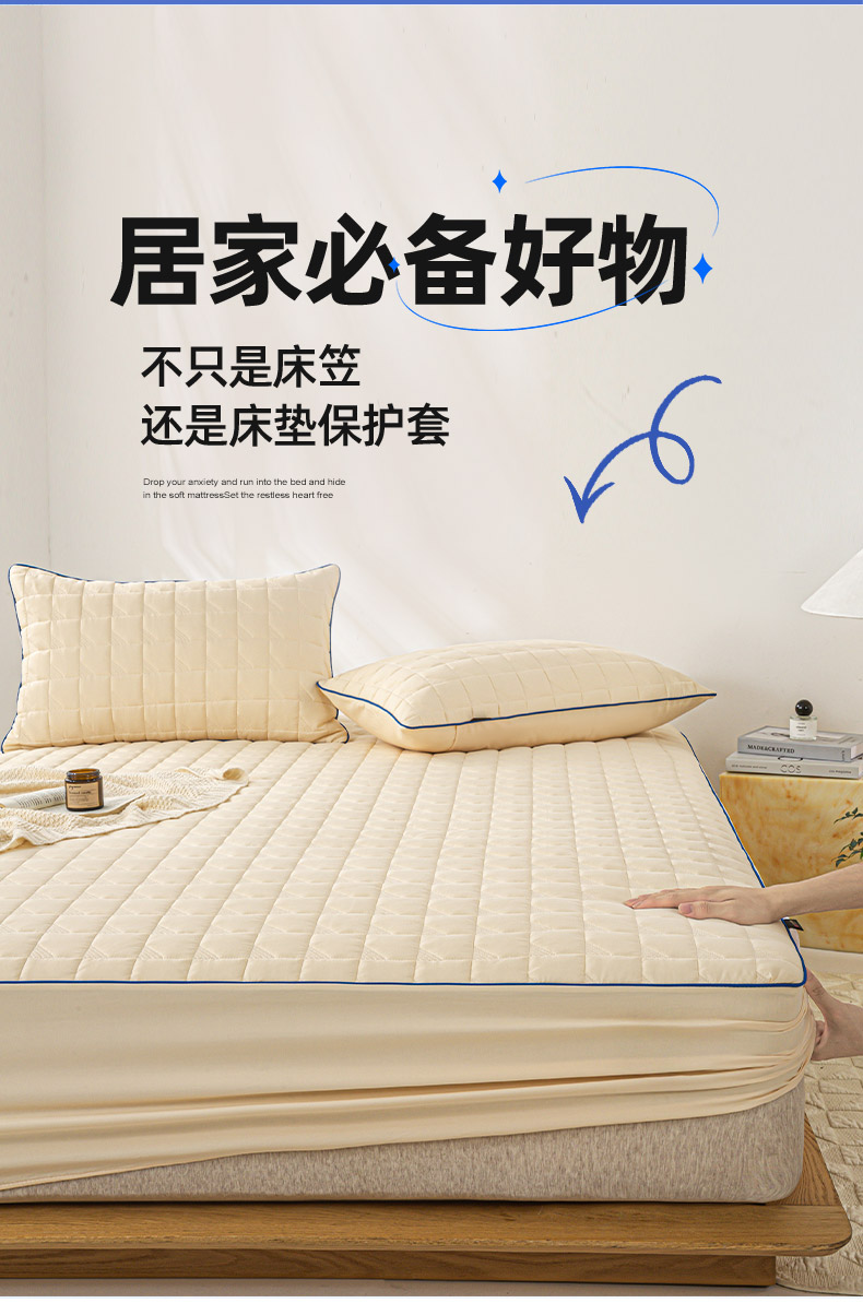 • 91家纺网 家纺一手货源 找家纺 (总)好眠好梦家纺 2025新款全棉50S抗菌防螨夹棉防水床笠-无限之光系列,白色,粉色,卡其,深灰,天蓝,烟灰