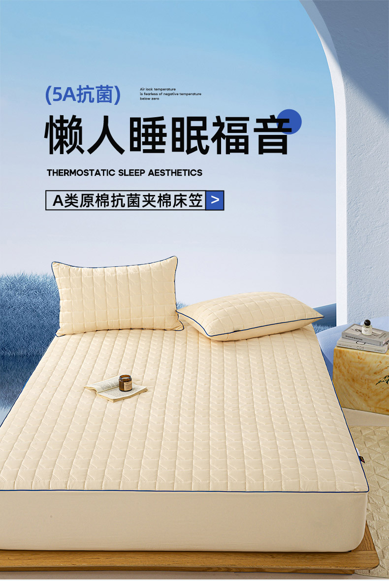 • 91家纺网 家纺一手货源 找家纺 (总)好眠好梦家纺 2025新款全棉50S夹棉抗菌防螨床笠-棉生活系列,白色,粉色,卡其,深灰,天蓝,烟灰
