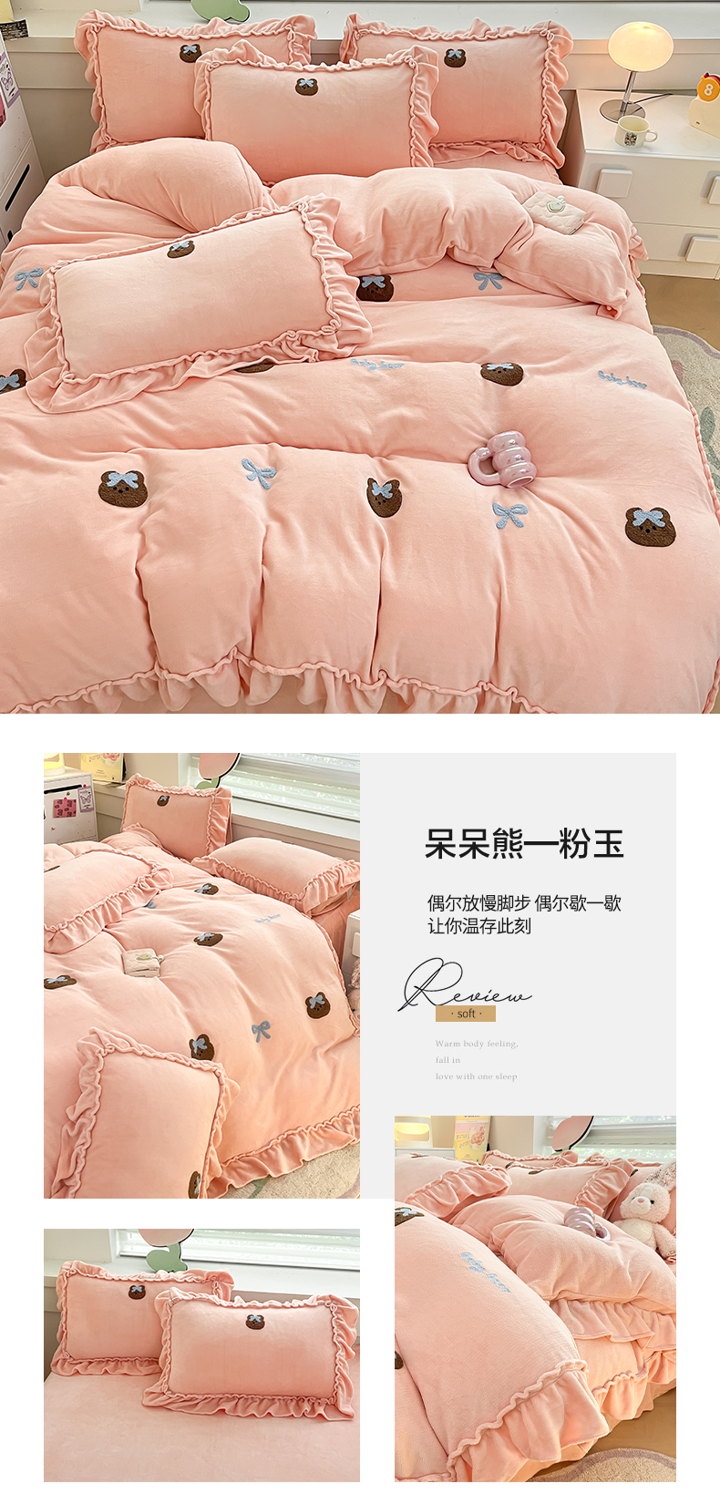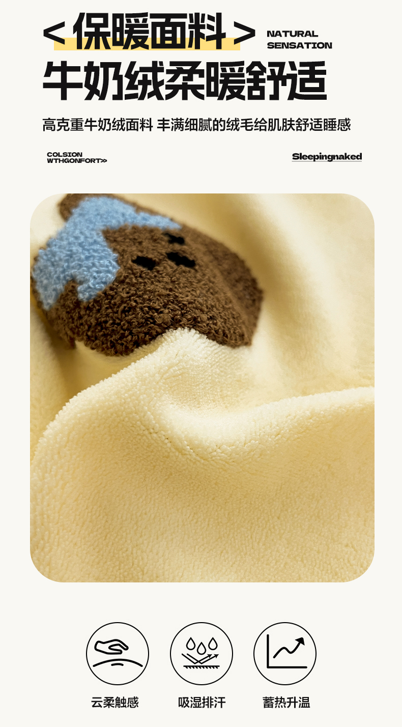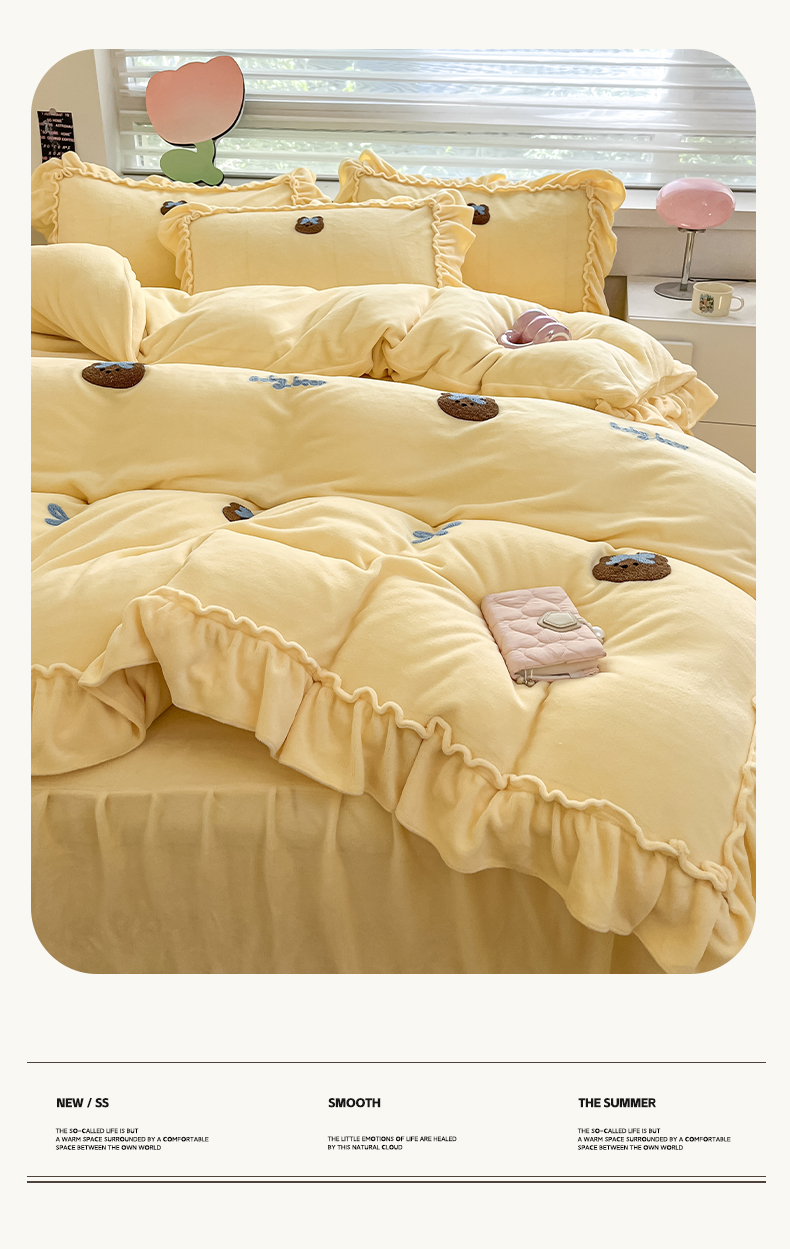 亨通家纺 2024新款高克重法式牛奶绒四件套系列-呆萌风 呆萌风-奶黄