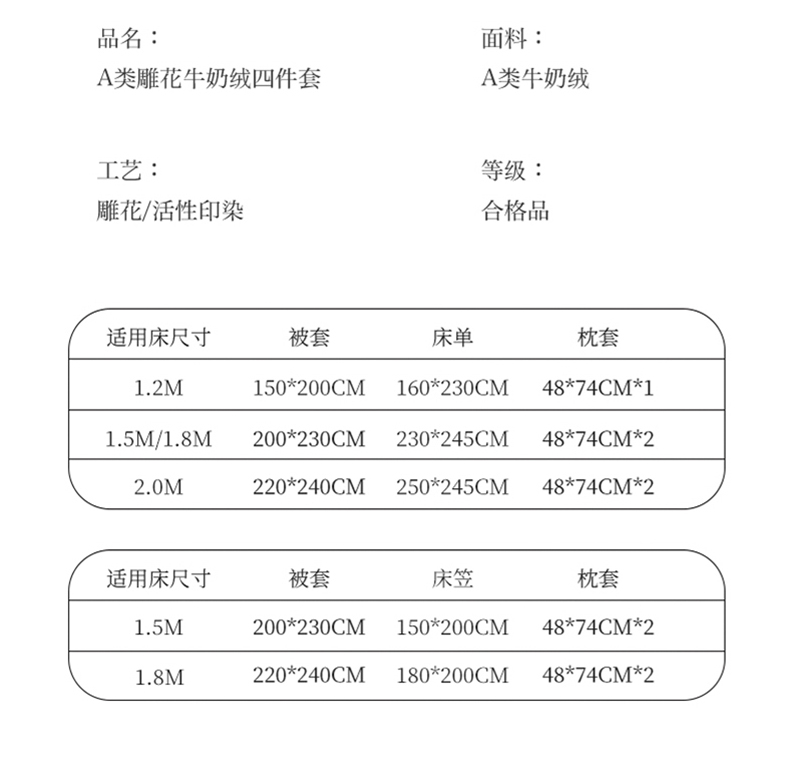 1.8m床笠款四件套 | ¥140.00 |