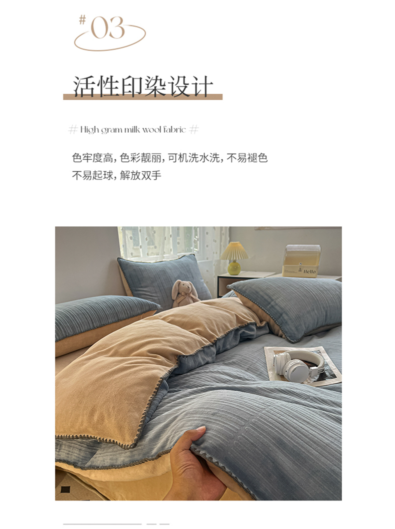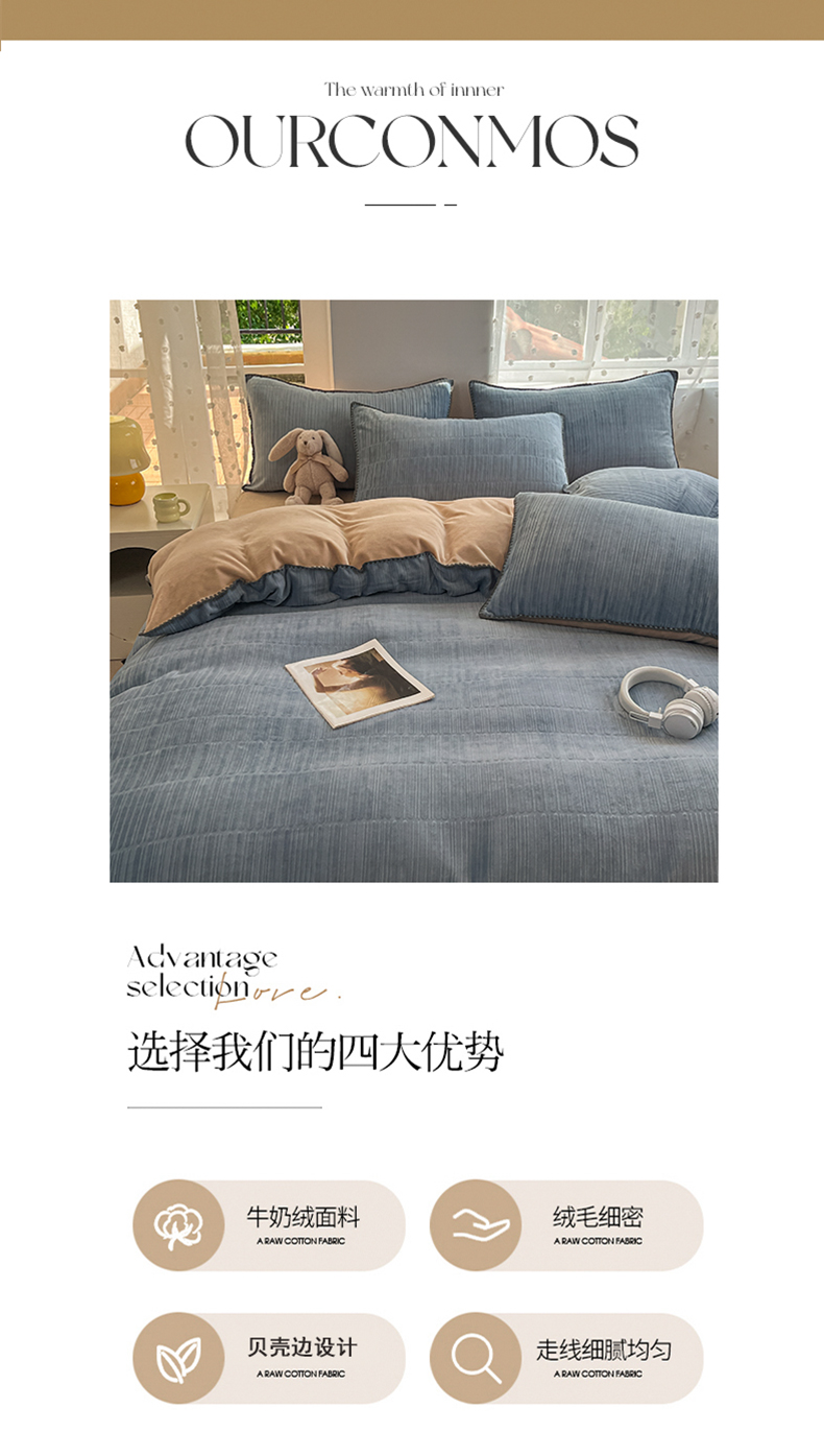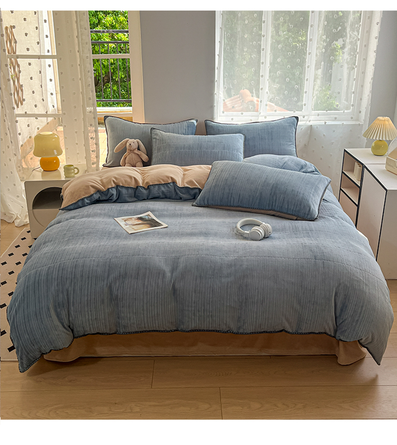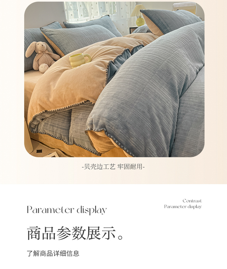 当前位置: 91家纺网 > 商品网购 > 床品套件 > 四件套 > 牛奶绒四件套 > 晚依家纺 2024新款230g纯色立体雕花牛奶绒四件套贝壳边加厚保暖定制定做 香榭格调-雨水蓝