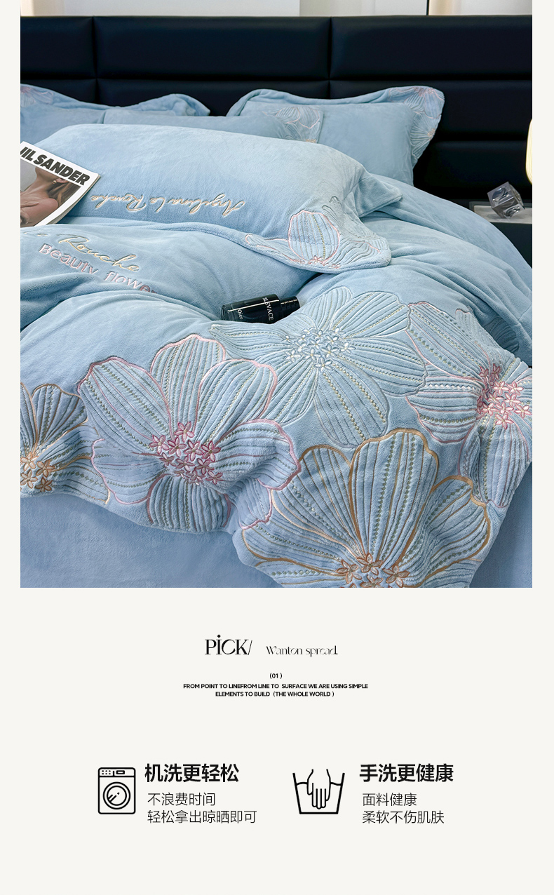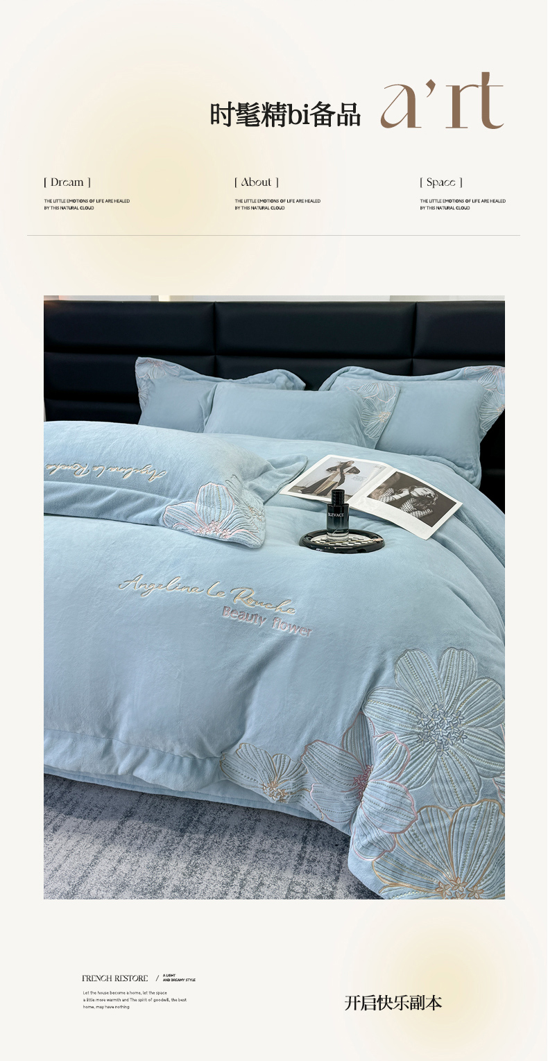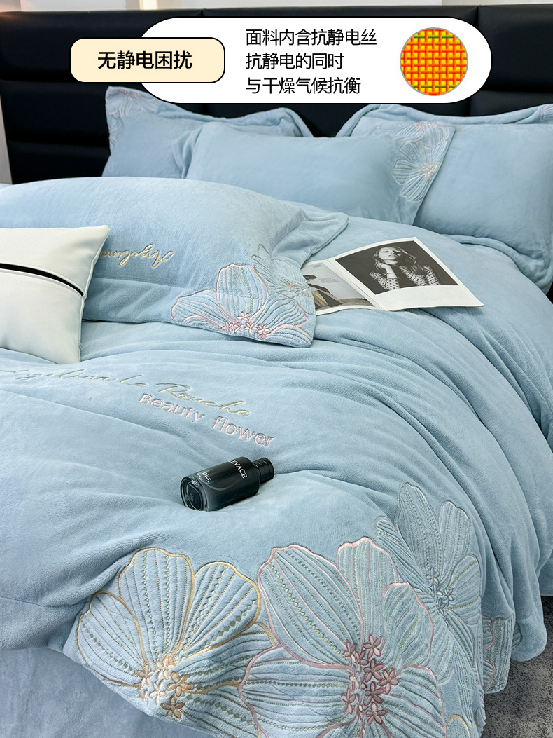商品名称:星蕴家纺 2024新款220克全消光牛奶绒四件套--绮丽 牛仔蓝