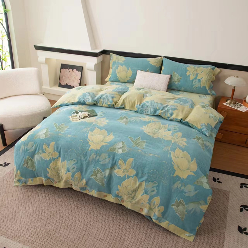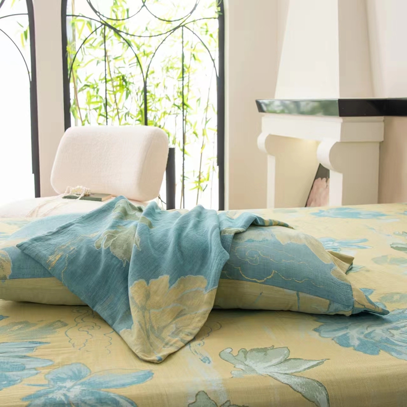 (总)双层纱家居 2024新款双层纱四件套,百福蓝,梦百合,水墨米黄,水墨米兰,西雅图蓝