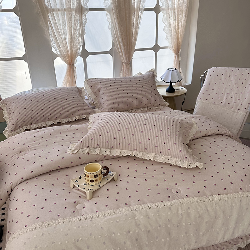 奈萝家纺 2025新款全棉13372花边床盖三件套四件套纯棉花边夏被春秋被 奥黛丽粉