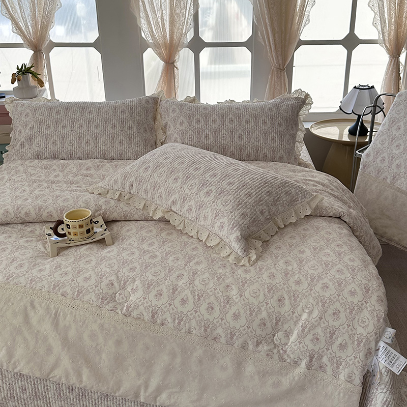 奈萝家纺 2025新款全棉13372花边床盖三件套四件套纯棉花边夏被春秋被 花海紫