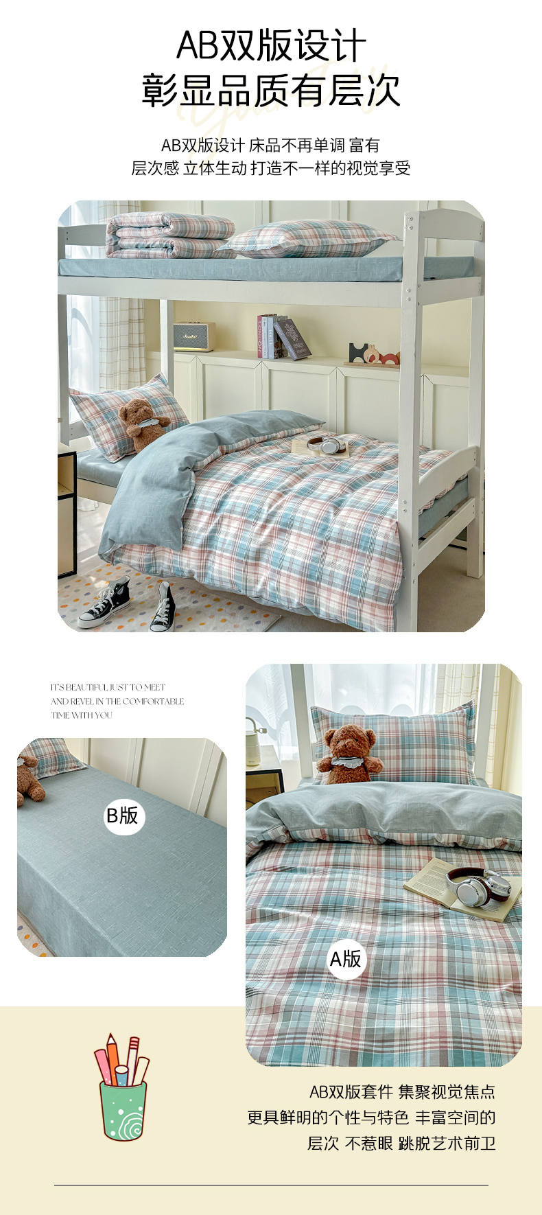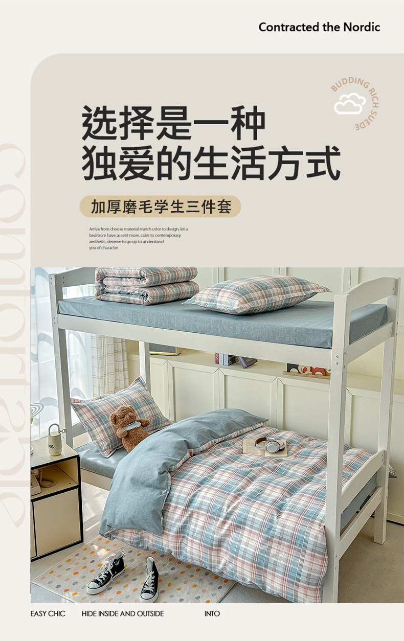 当前位置: 91家纺网 > 商品网购 > 床品套件 > 三件套 > 鑫宇 2025新款磨毛130g加厚学生宿舍三件套床单床笠款学生上下铺六件套 彩绘格