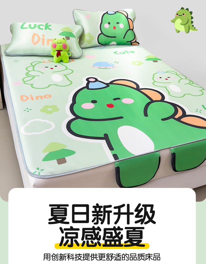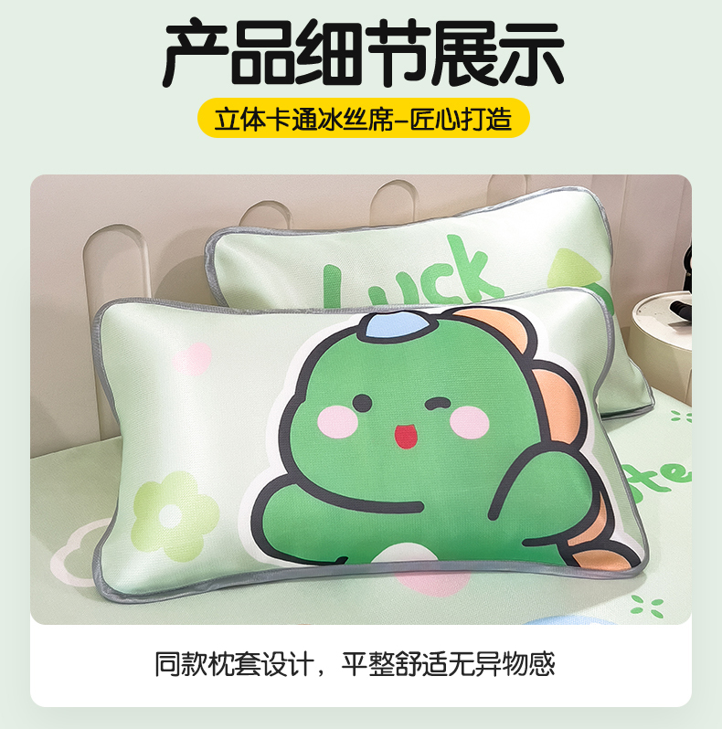 商品名称:兄弟坊 2025新款大版立体卡通异形碳光冰丝席 恐龙来了