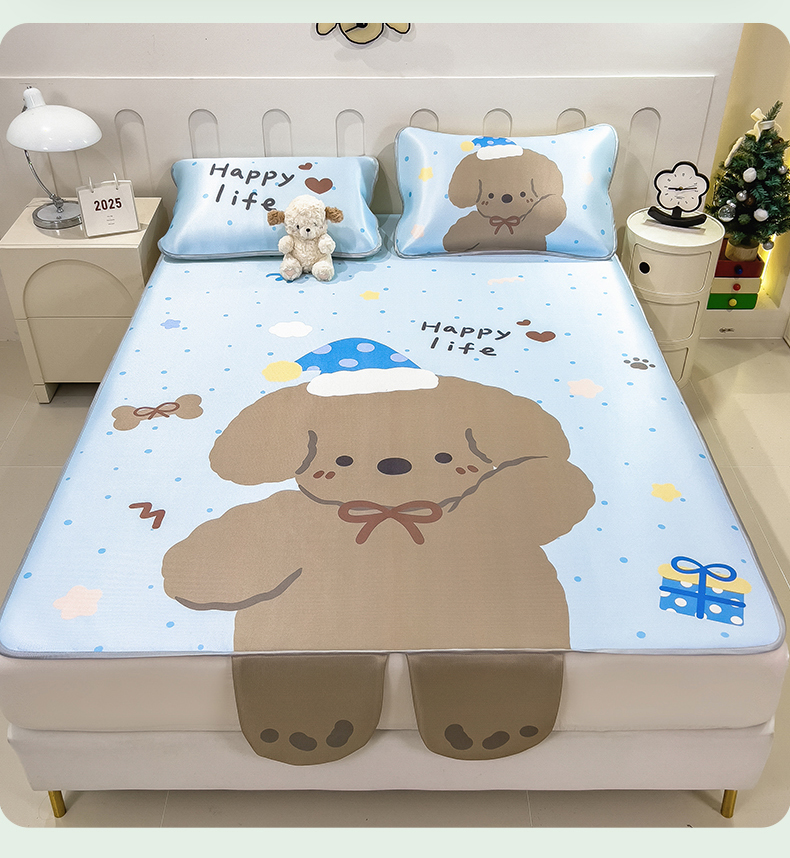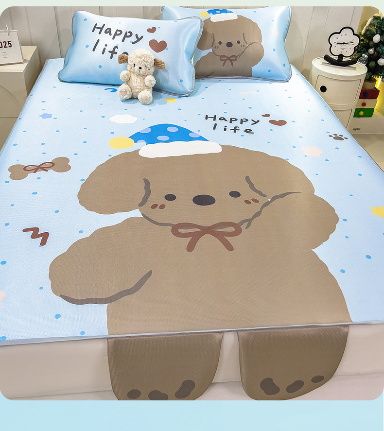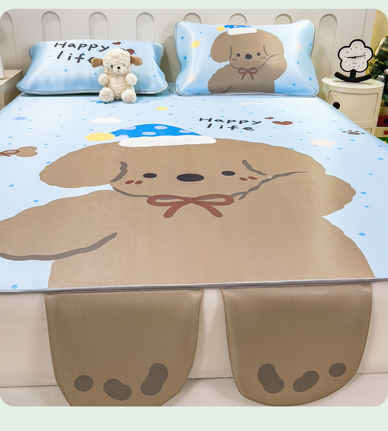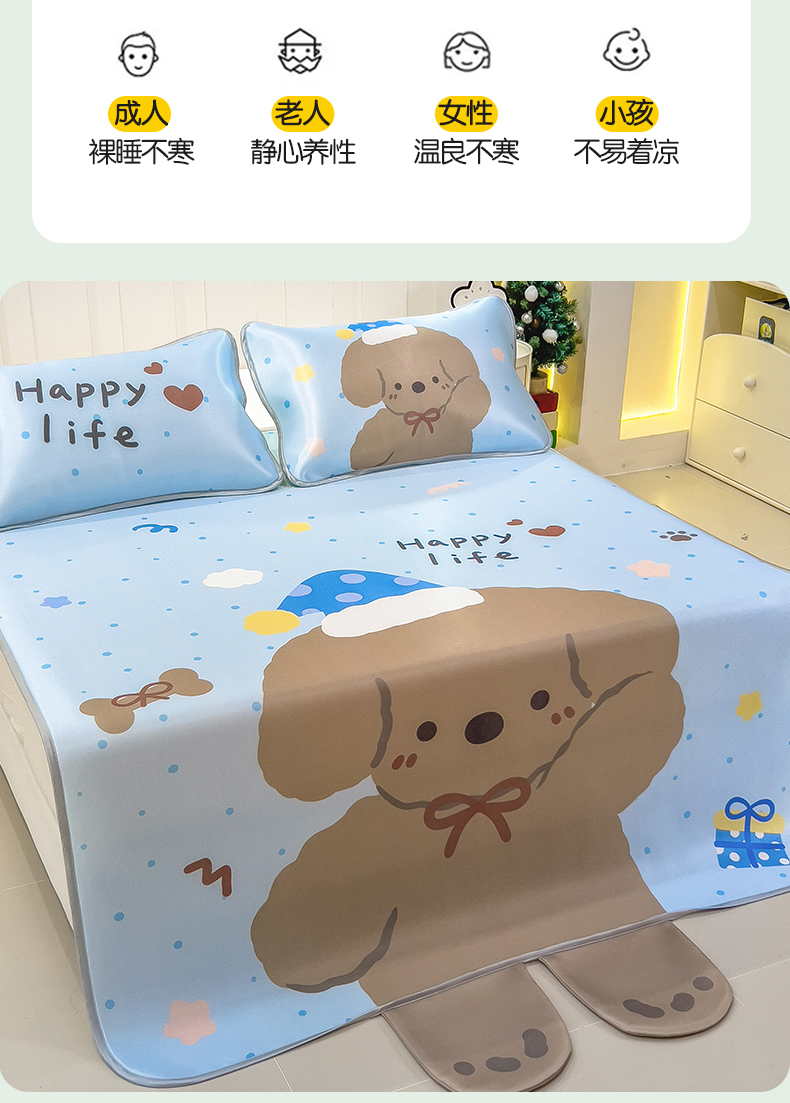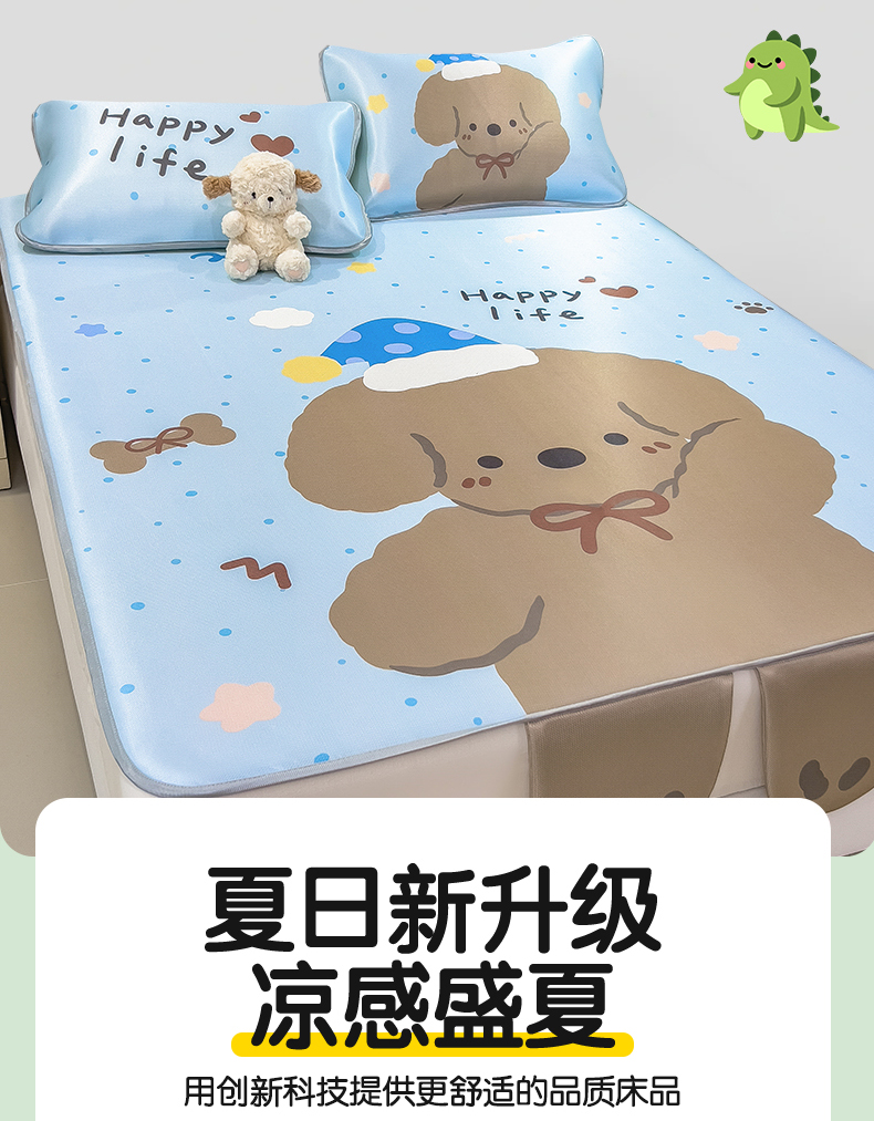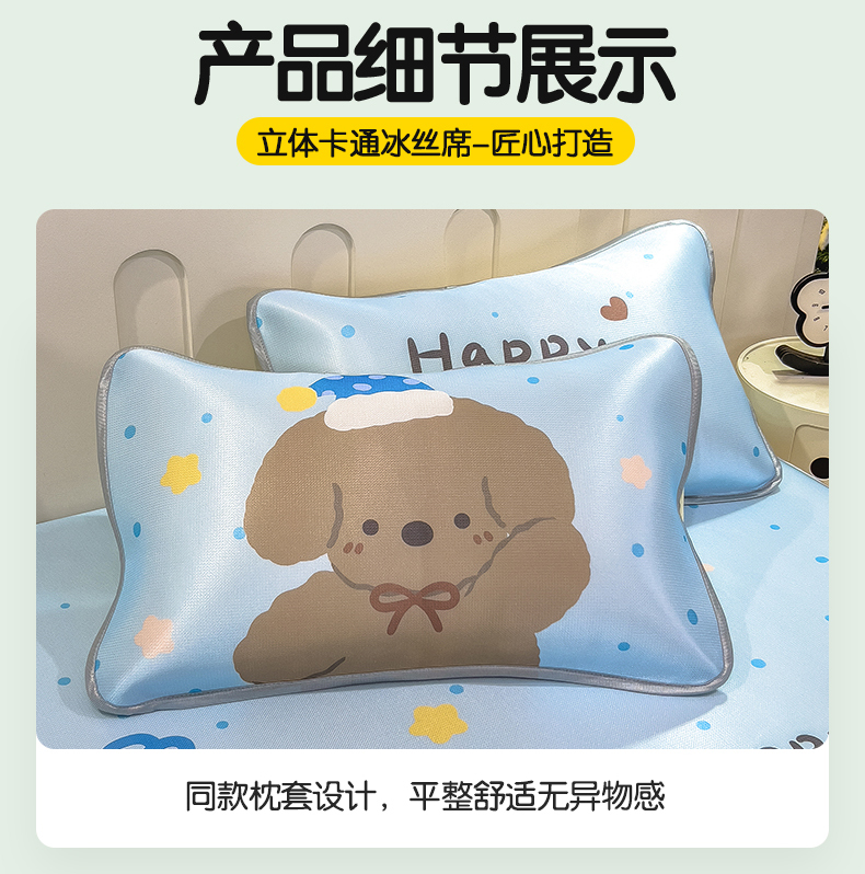 商品名称:兄弟坊 2025新款大版立体卡通异形碳光冰丝席 晚安小狗-蓝