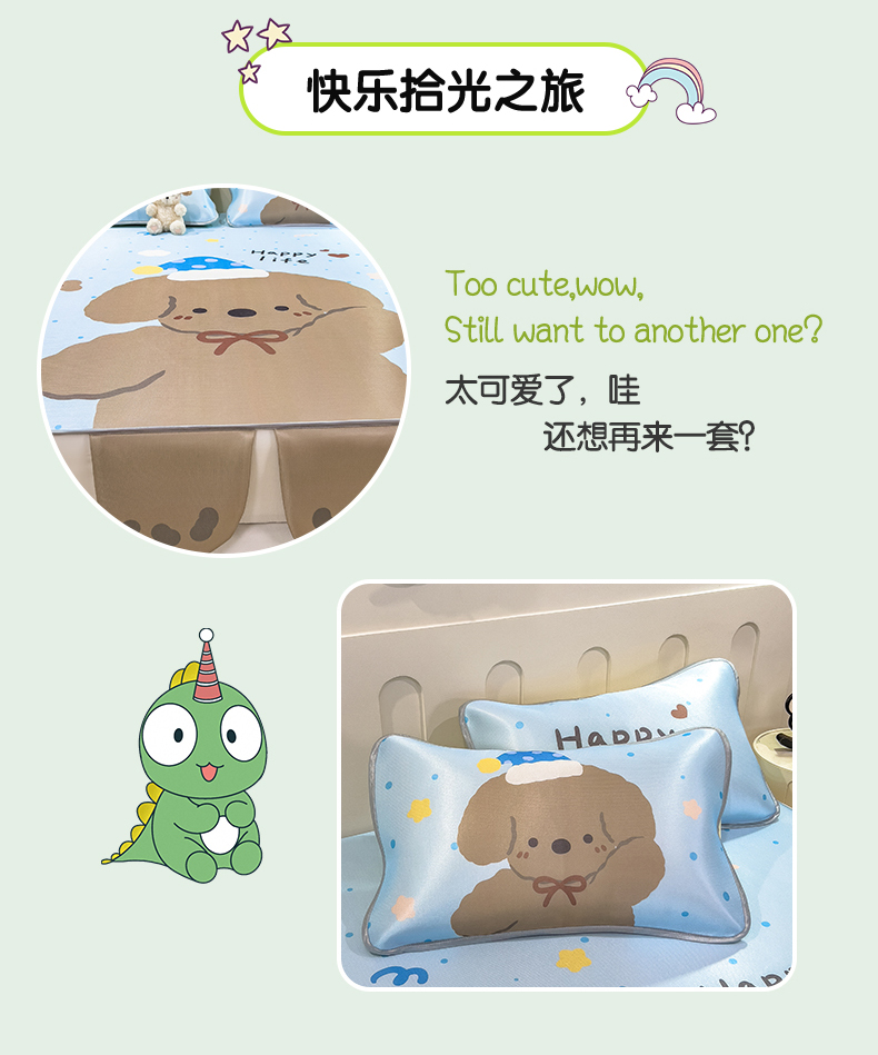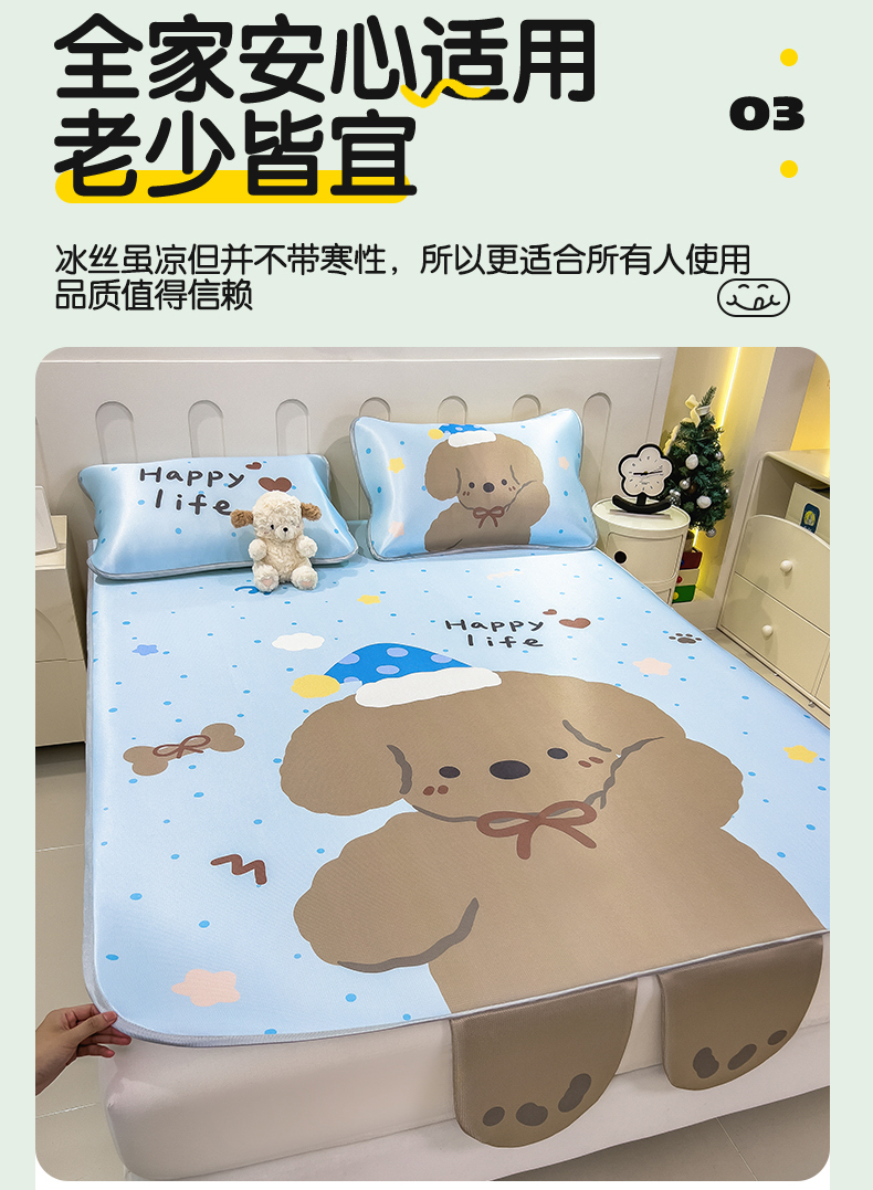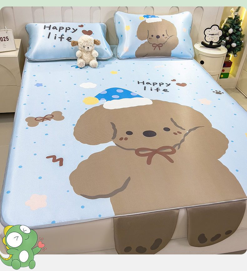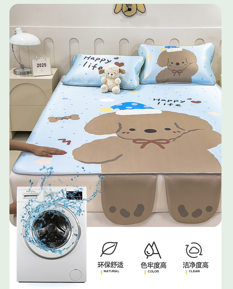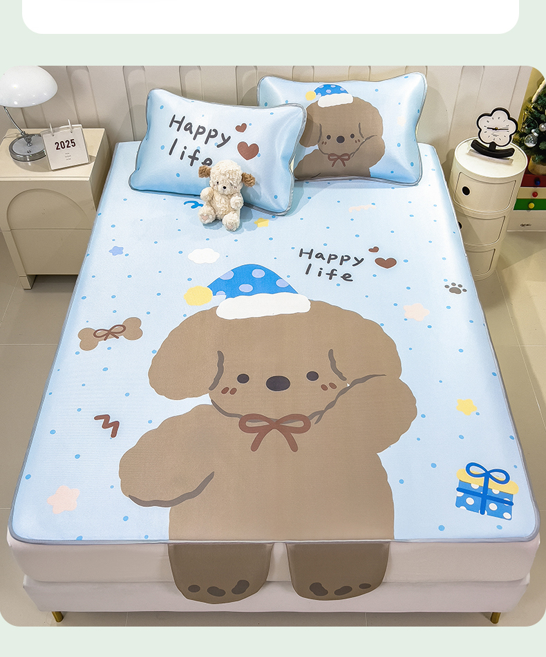 商品名称:兄弟坊 2025新款大版立体卡通异形碳光冰丝席 晚安小狗-蓝