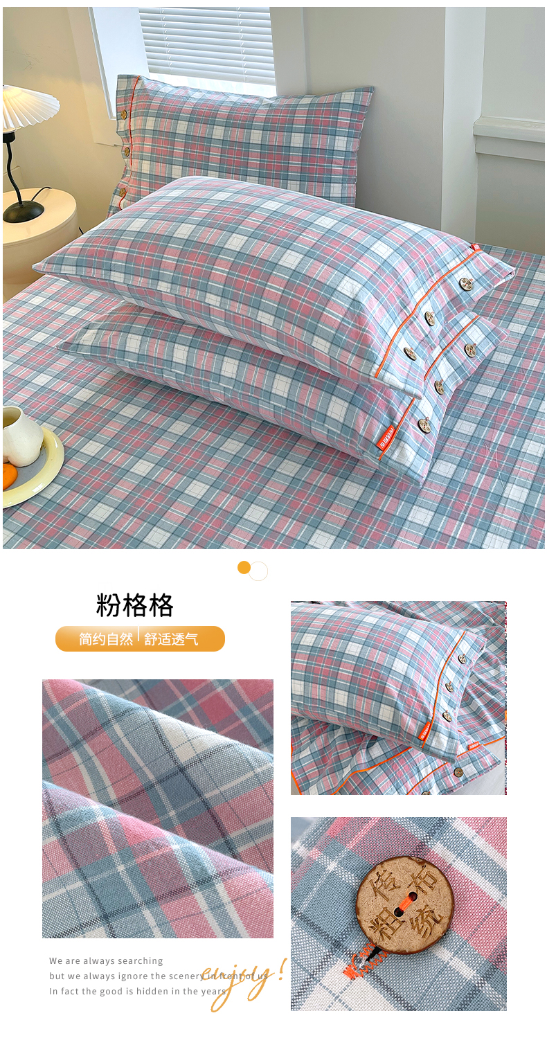 商品名称:春皖家纺 2025新款全棉色织密拷老粗布系列-单枕套 粉格格