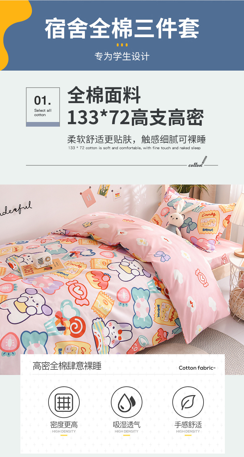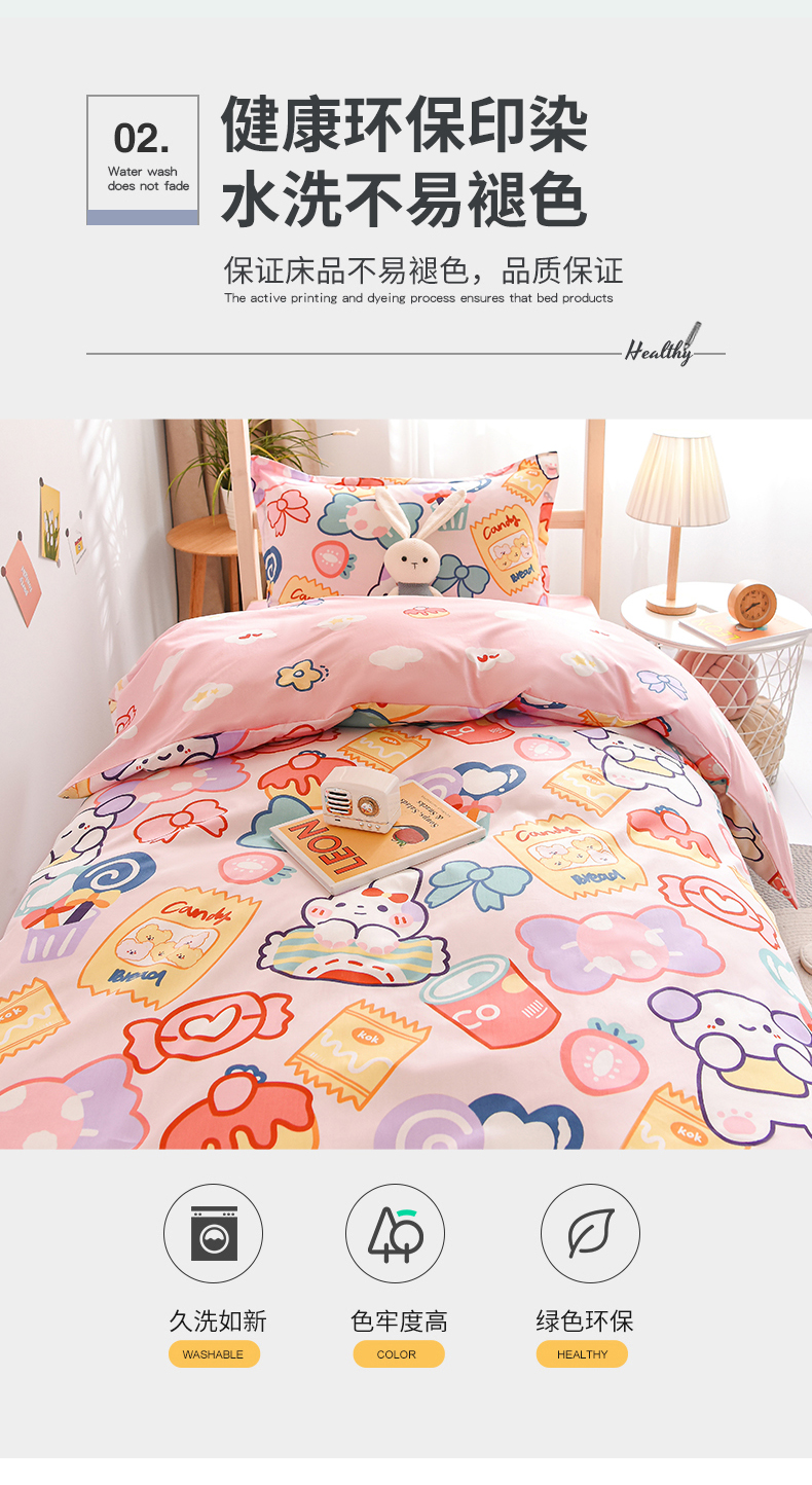 当前位置: 91家纺网 > 商品网购 > 床品套件 > 三件套 > 鑫宇 2025全棉13372床单款印花学生三件套 快乐园-粉