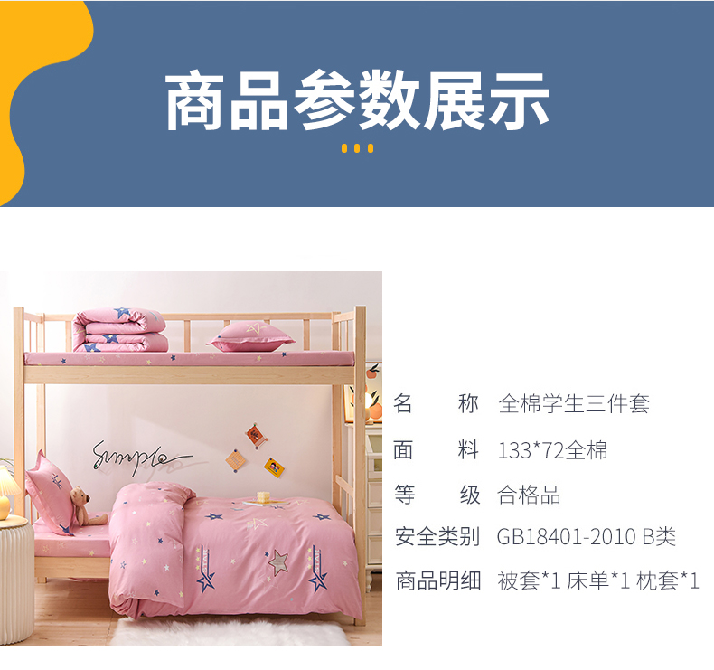 三件套+4斤棉花被+3斤棉花垫(90*200)+枕芯 | ¥153.00 |