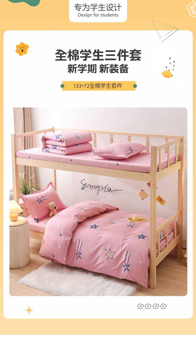 当前位置: 91家纺网 > 商品网购 > 床品套件 > 三件套 > 鑫宇 2025全棉13372床单款印花学生三件套 星途之光-粉