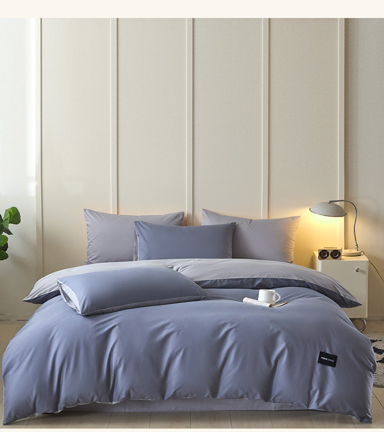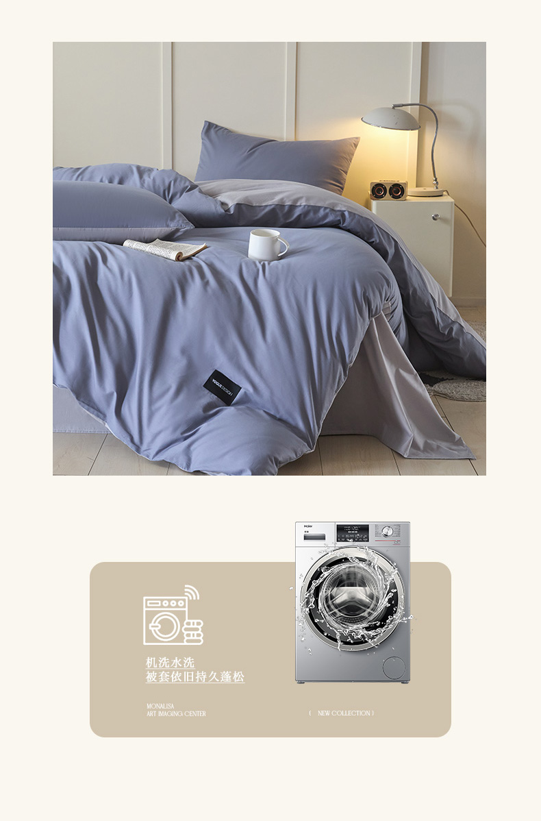 商品名称:乐美家纺 2025新款全棉双拼单被套 布鲁兰+石灰