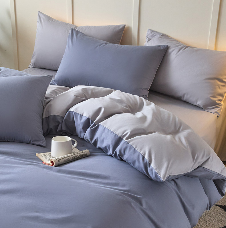 乐美家纺 2025新款全棉双拼单被套 布鲁兰+石灰