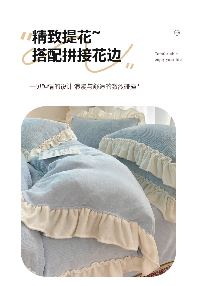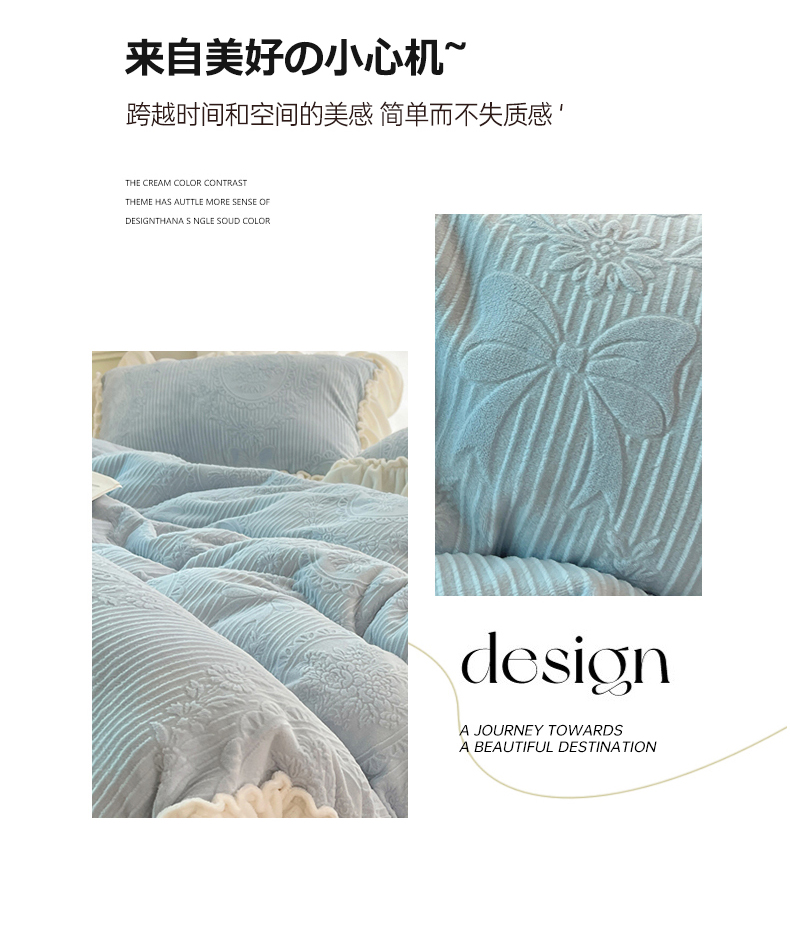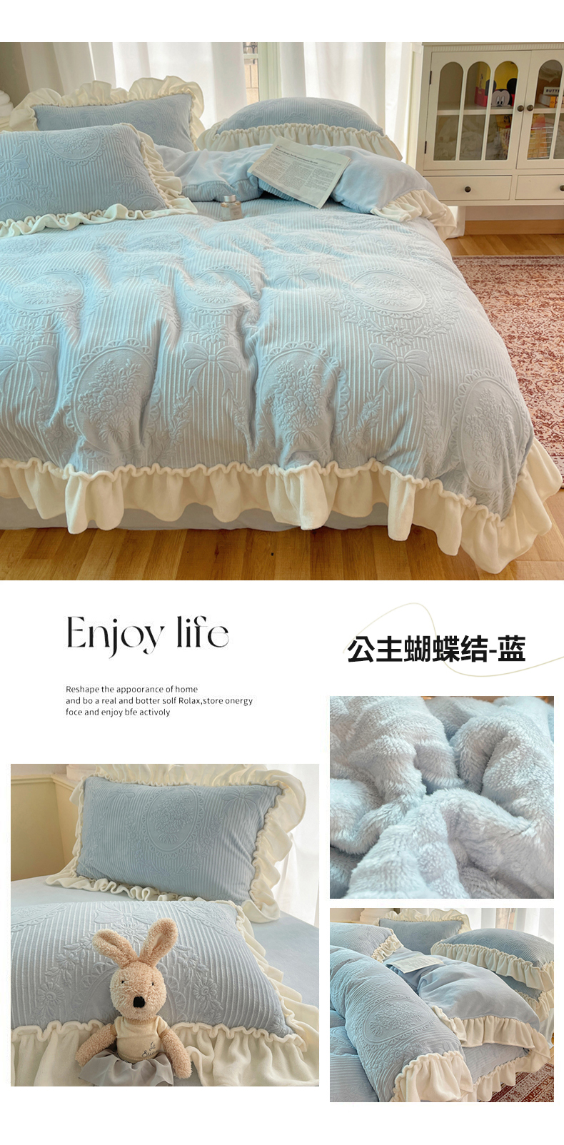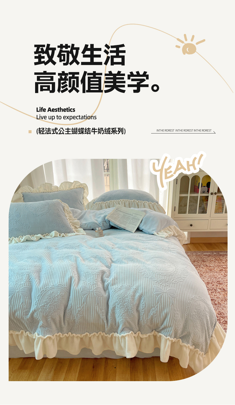 当前位置: 91家纺网 > 商品网购 > 床品套件 > 四件套 > 牛奶绒四件套 > 六巷胡同 2025新款轻法式公主蝴蝶结提花牛奶绒四件套-风格一 公主蝴蝶结-蓝