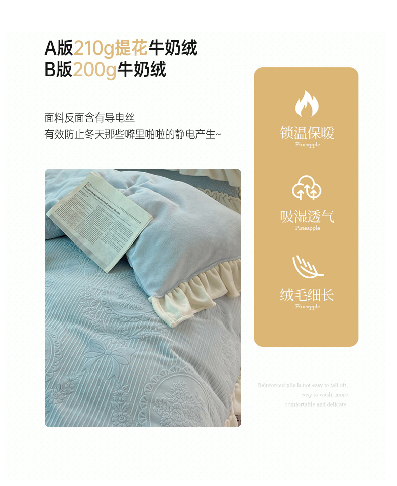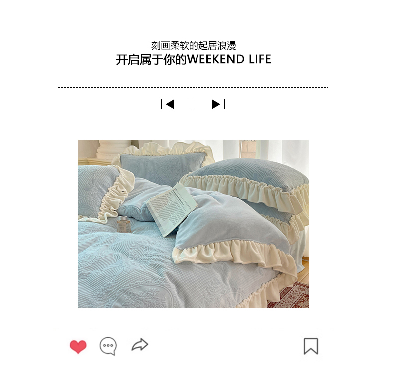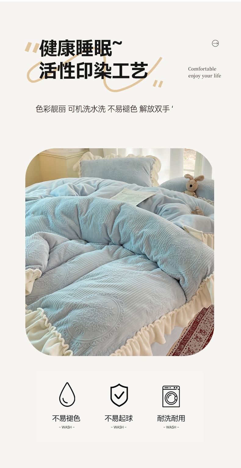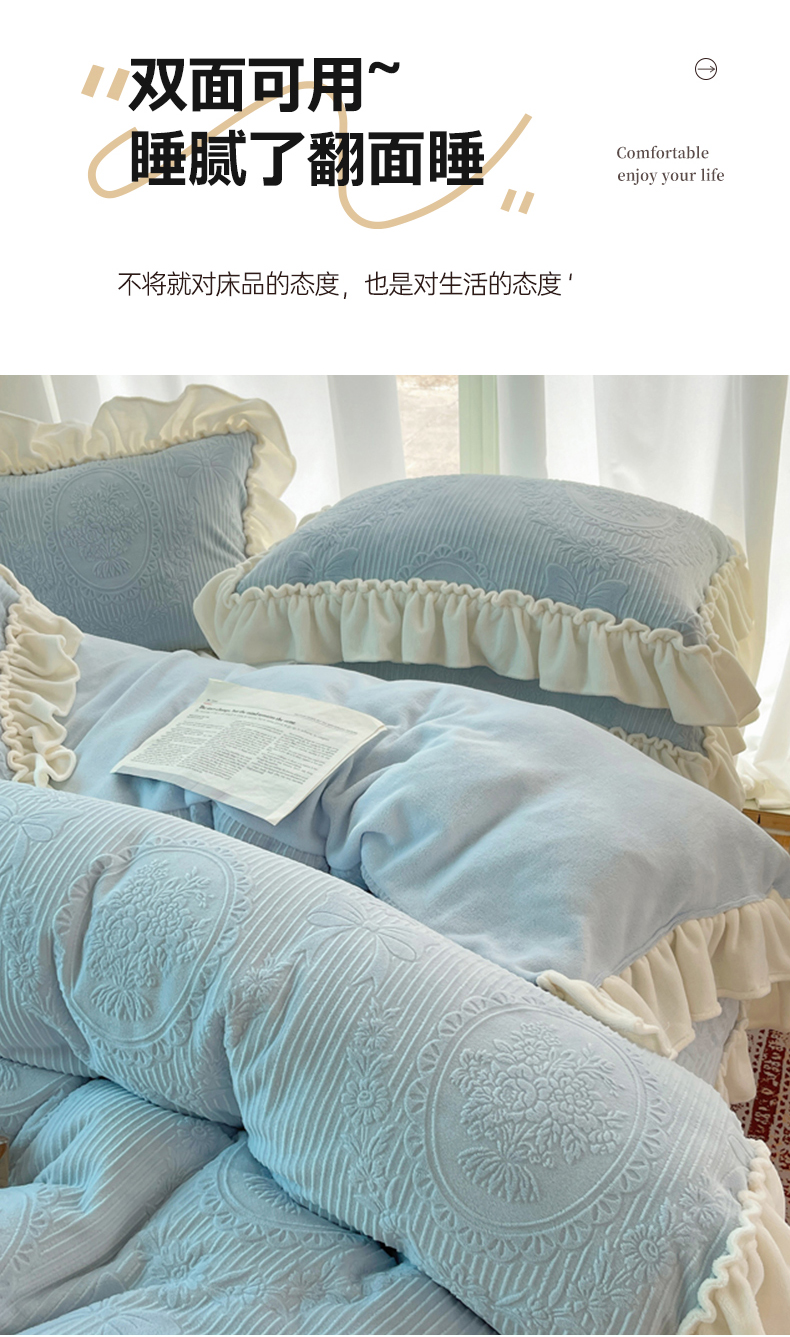 当前位置: 91家纺网 > 商品网购 > 床品套件 > 四件套 > 牛奶绒四件套 > 六巷胡同 2025新款轻法式公主蝴蝶结提花牛奶绒四件套-风格一 公主蝴蝶结-蓝