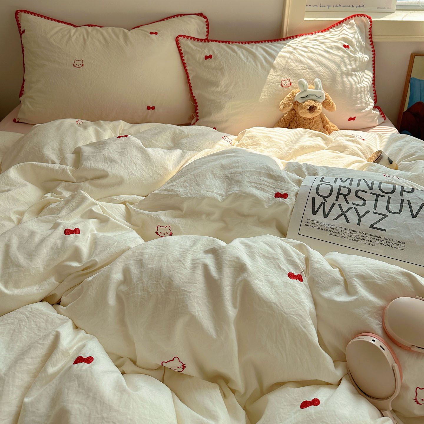 当前位置: 91家纺网 > 商品网购 > 床品套件 > 四件套 > 其它四件套 > 顾里家纺 2025新款ins韩风刺绣云朵棉四件套 贝拉猫咪