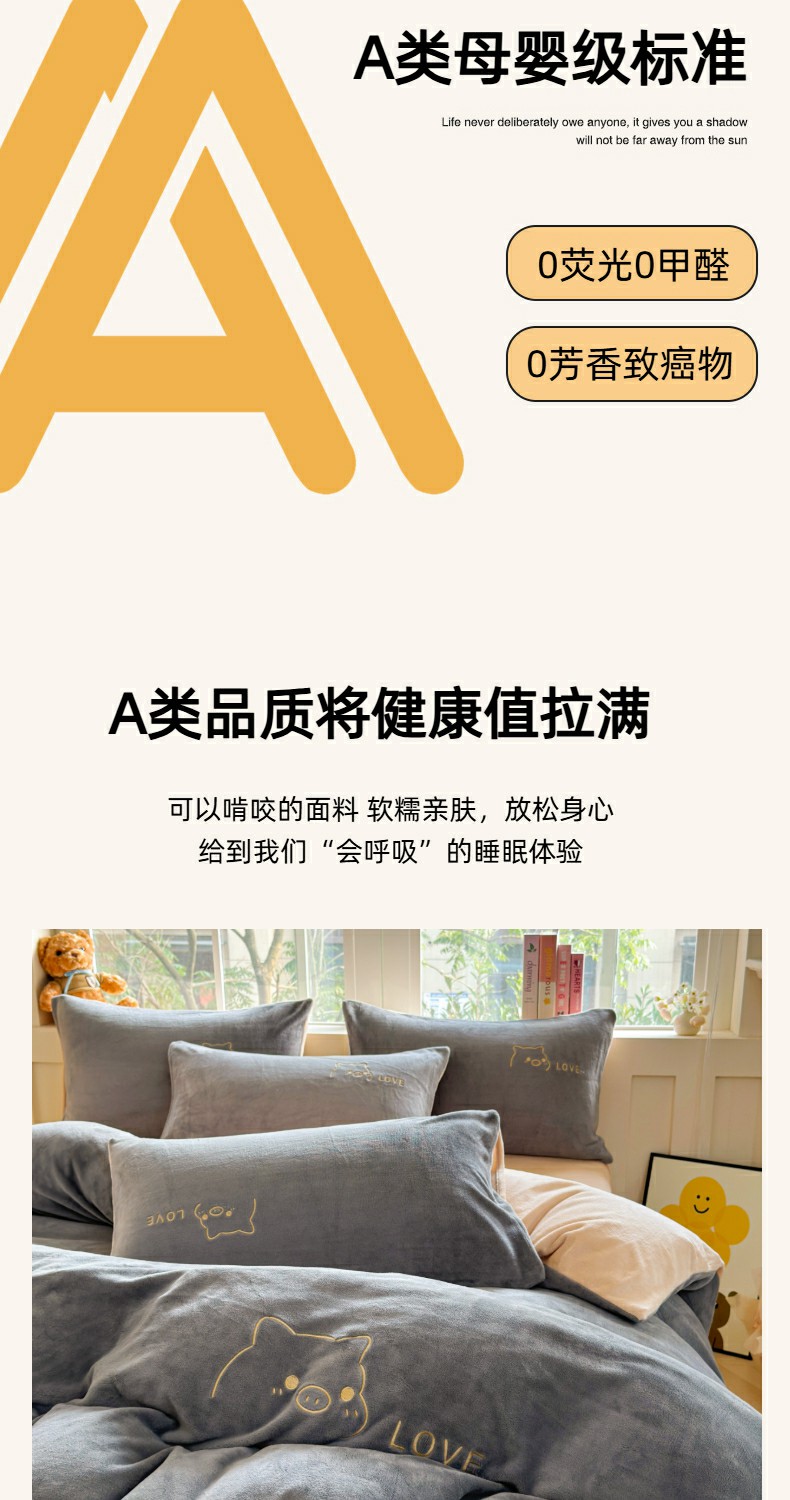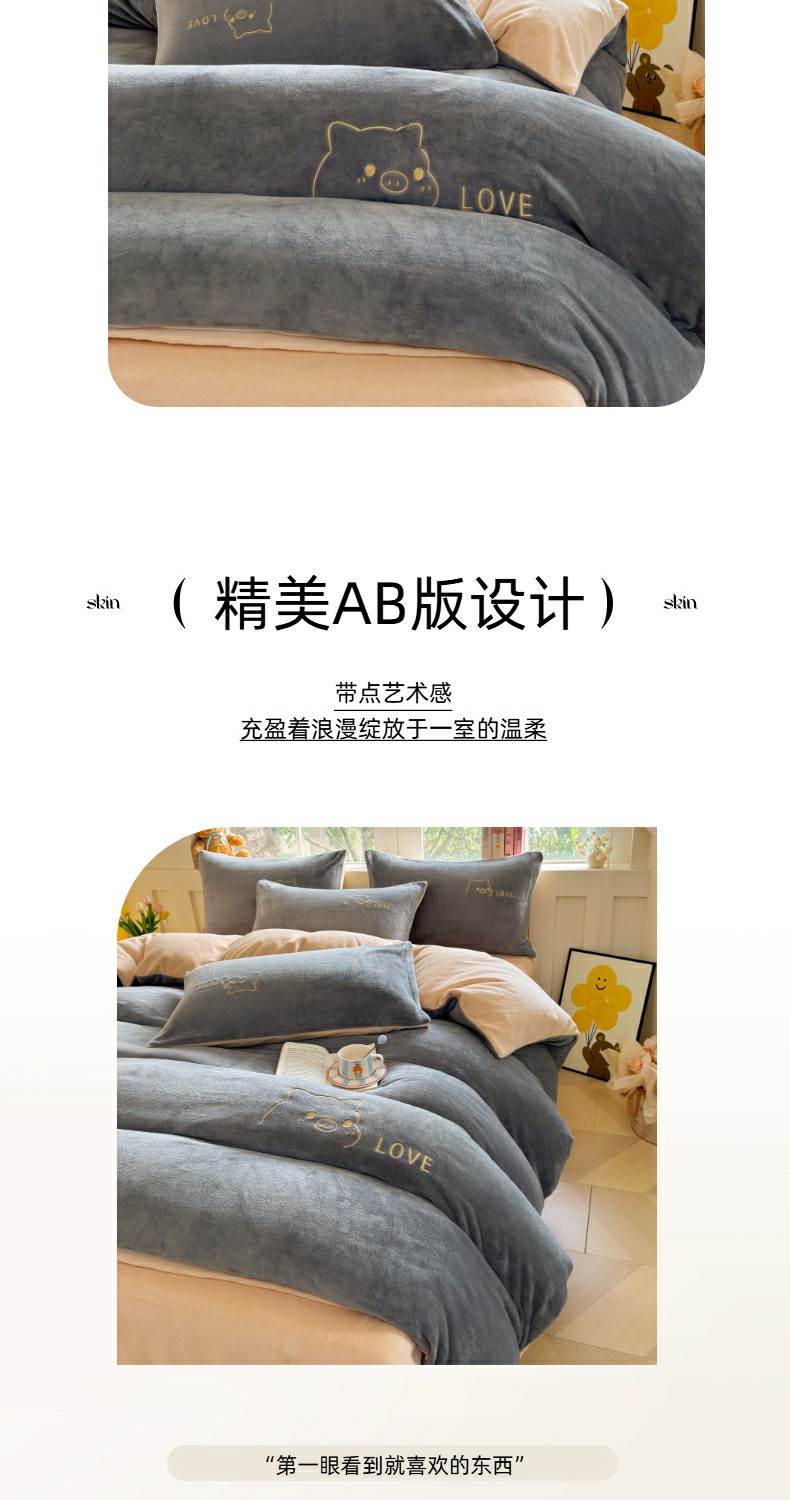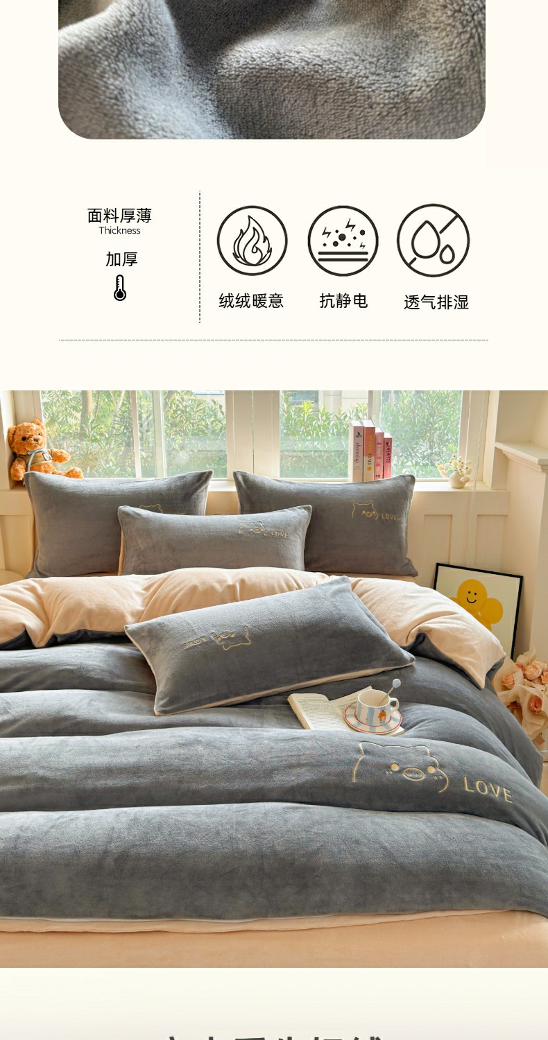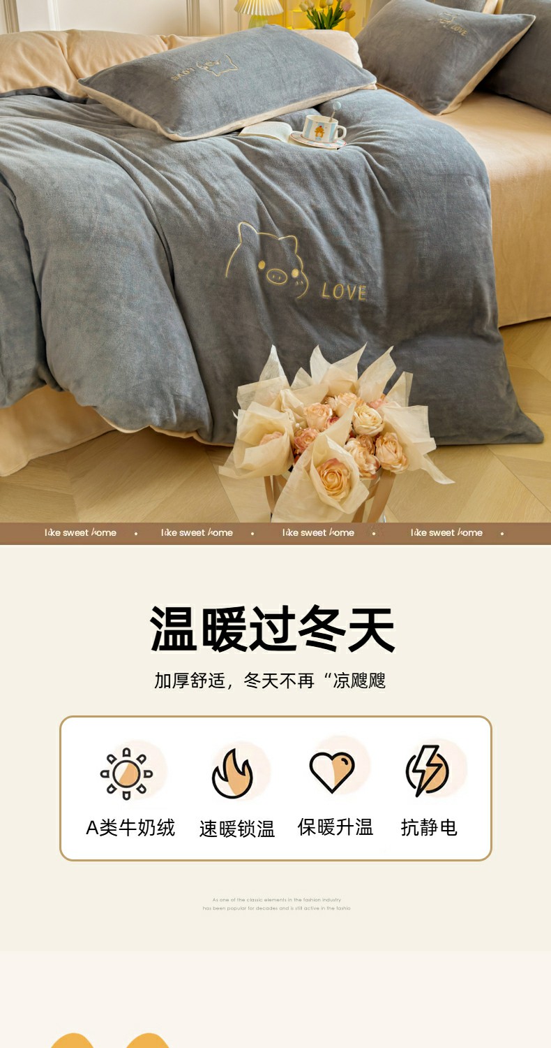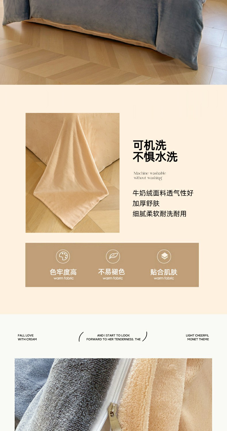 (总)梦恬佳 2025新款亲肤舒适牛奶绒刺绣四件套,杏+米咖,豆沙+太空灰,高级灰,高级灰+杏色,奶白+新芽绿,奶白+樱花粉