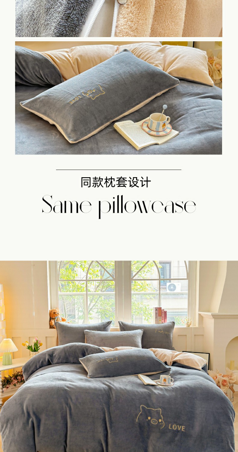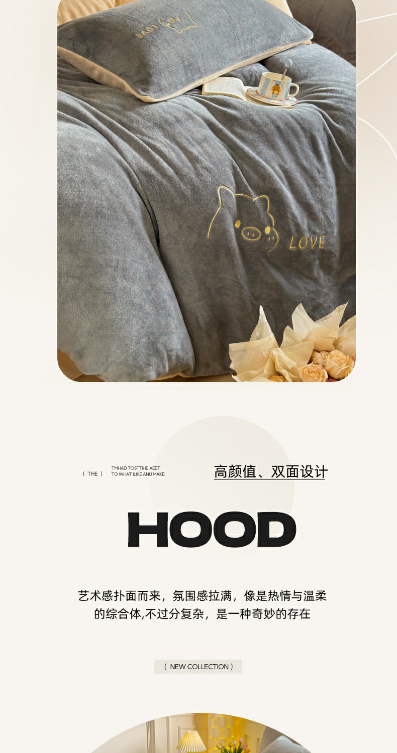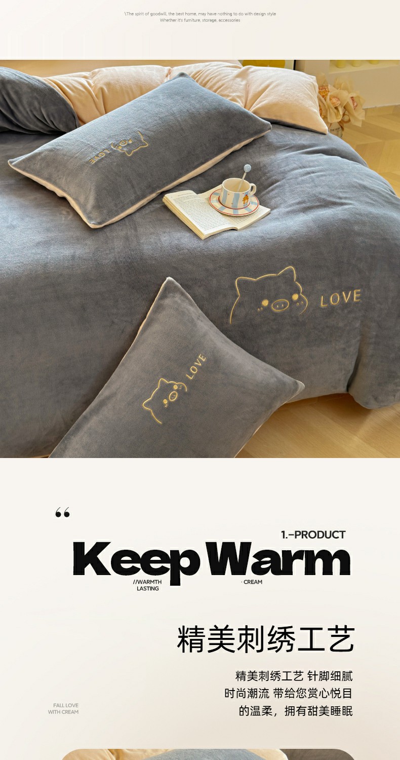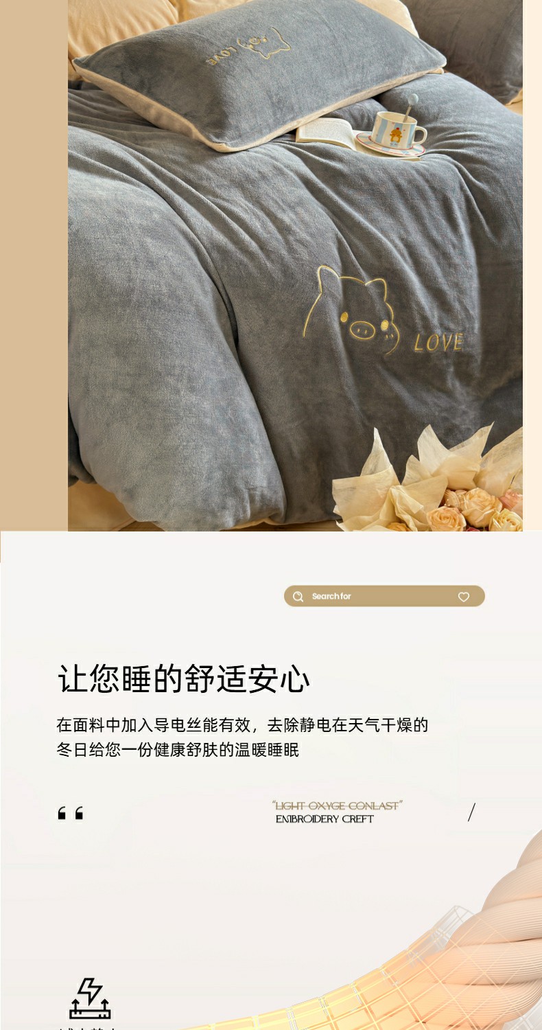 (总)梦恬佳 2025新款亲肤舒适牛奶绒刺绣四件套,杏+米咖,豆沙+太空灰,高级灰,高级灰+杏色,奶白+新芽绿,奶白+樱花粉