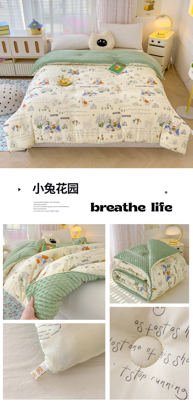 • 91家纺网 家纺一手货源 找家纺 乐沐 2025新款A类水洗棉双层纱豆豆绒被芯 小兔花园