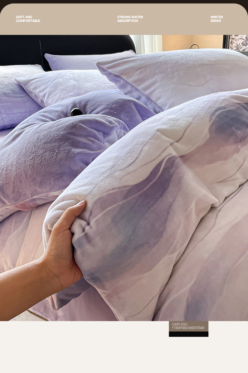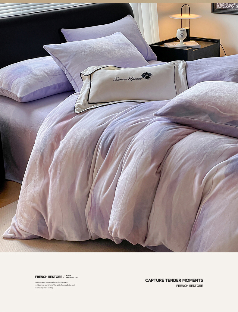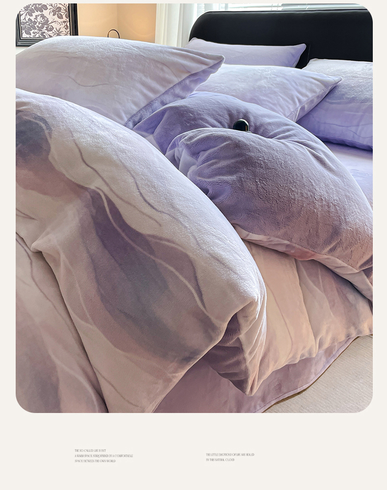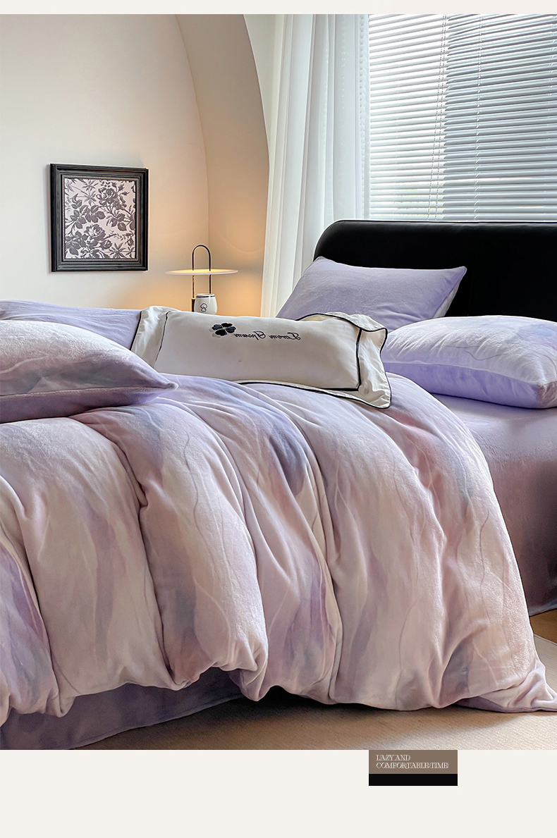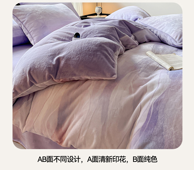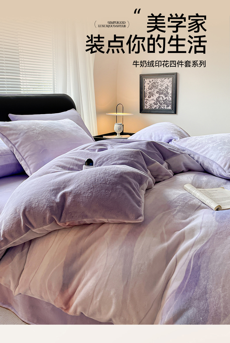 商品名称:本制 2025秋冬新款牛奶绒印花四件套 流年(紫)-风铃紫