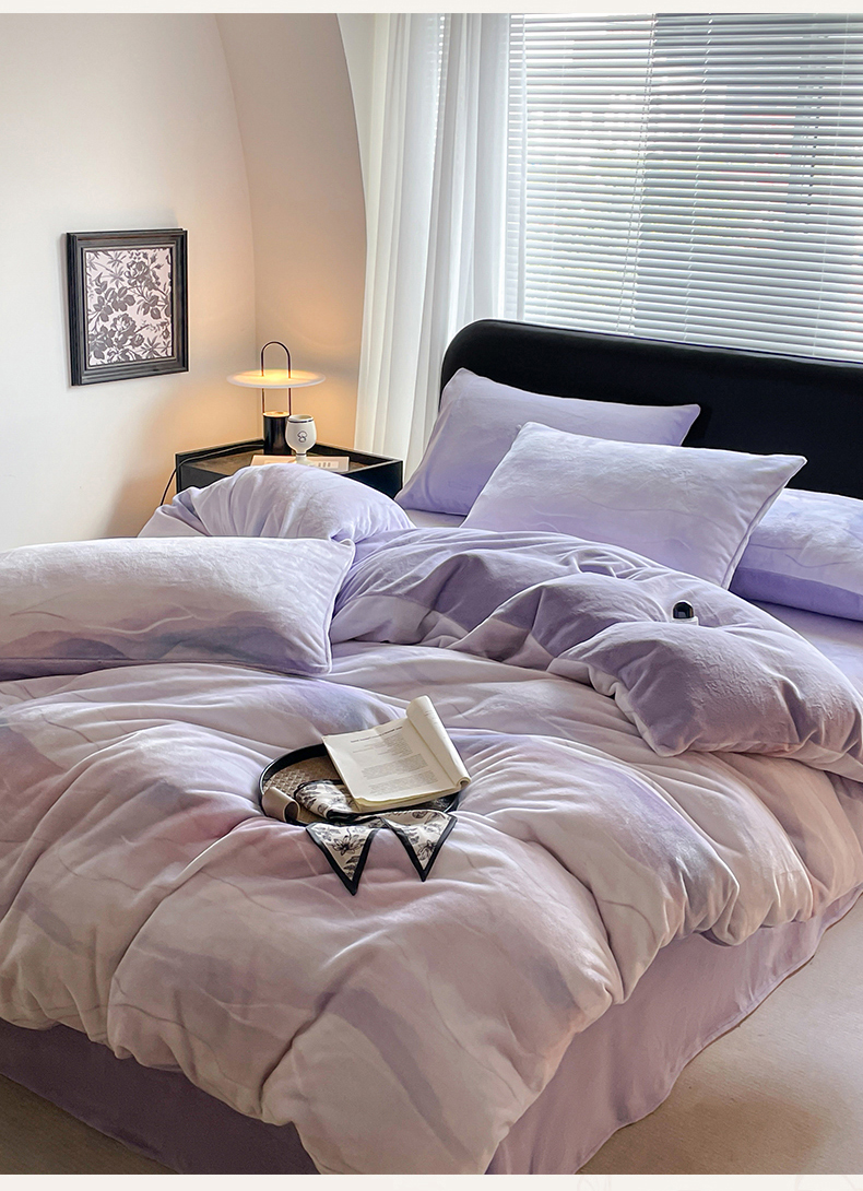 本制 2025秋冬新款牛奶绒印花四件套 流年(紫)-风铃紫