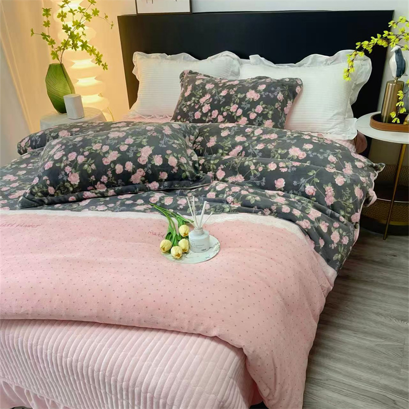 (总)富缦庭 2024新款直播爆款小清新印花牛奶绒床盖四件套,波点,波点咖,粉爱心,蓝色梦境,熊猫绿,爱心,豹纹粉,豹纹咖,红玫瑰,灰色爱心,静待时光,快乐家族,玫瑰香氛,萌萌兔,莫奈庄园,乌梅子酱,小樱桃