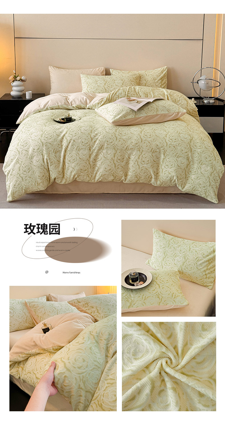 商品名称:吾秀家居 2025新款立体雕花牛奶绒四件套- 柔美系列 云山