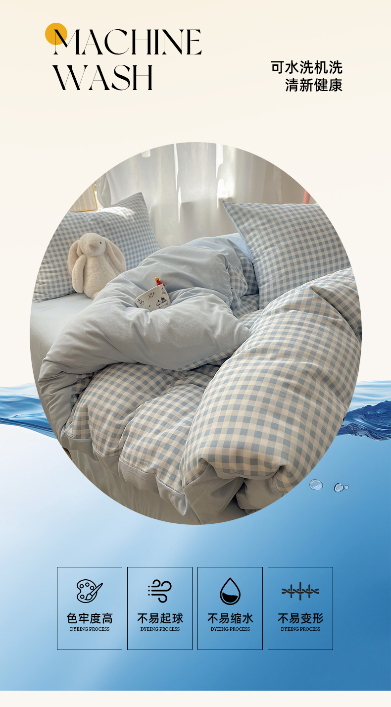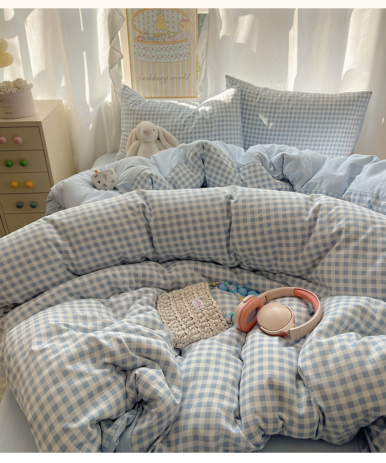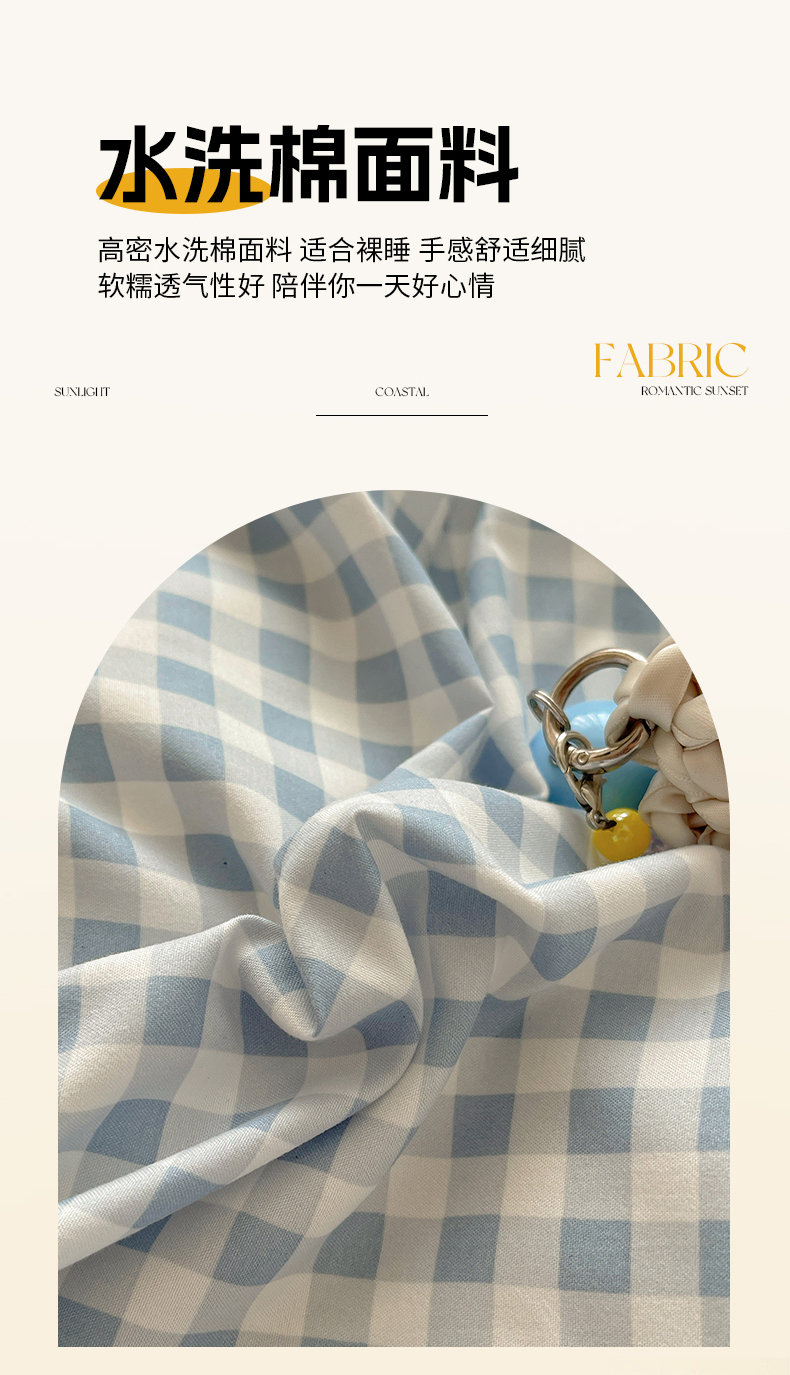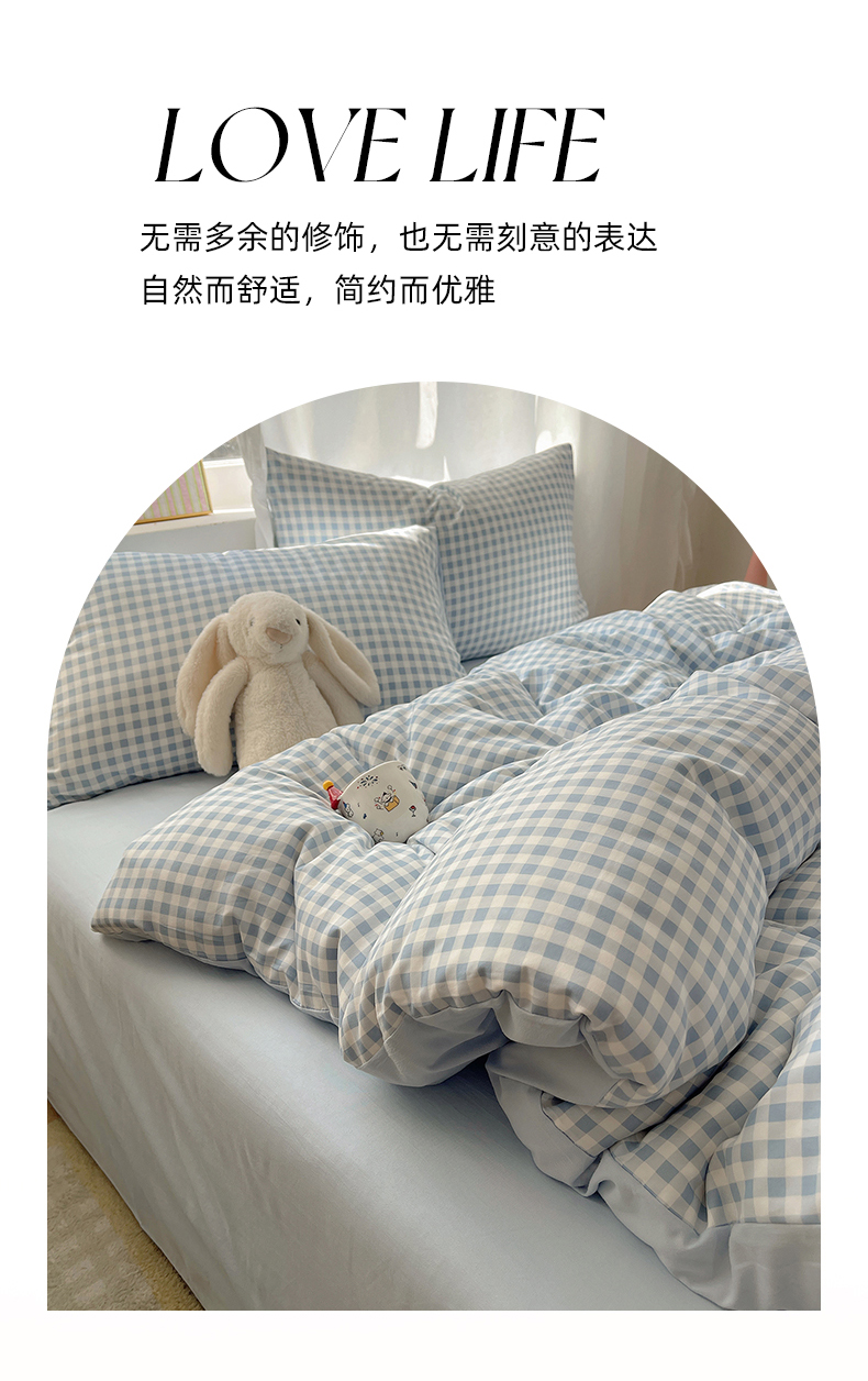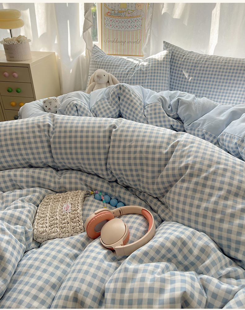 (总)初夏家纺 2026 水洗棉A类105g床上四件套床单被套三件套床笠简约小清新---【提供买家秀】,浅蓝格,波点狗,晕染爱心,彩色星星,风与爱,复古小熊,开心时光,奶味圆饼,浅粉格,小花园