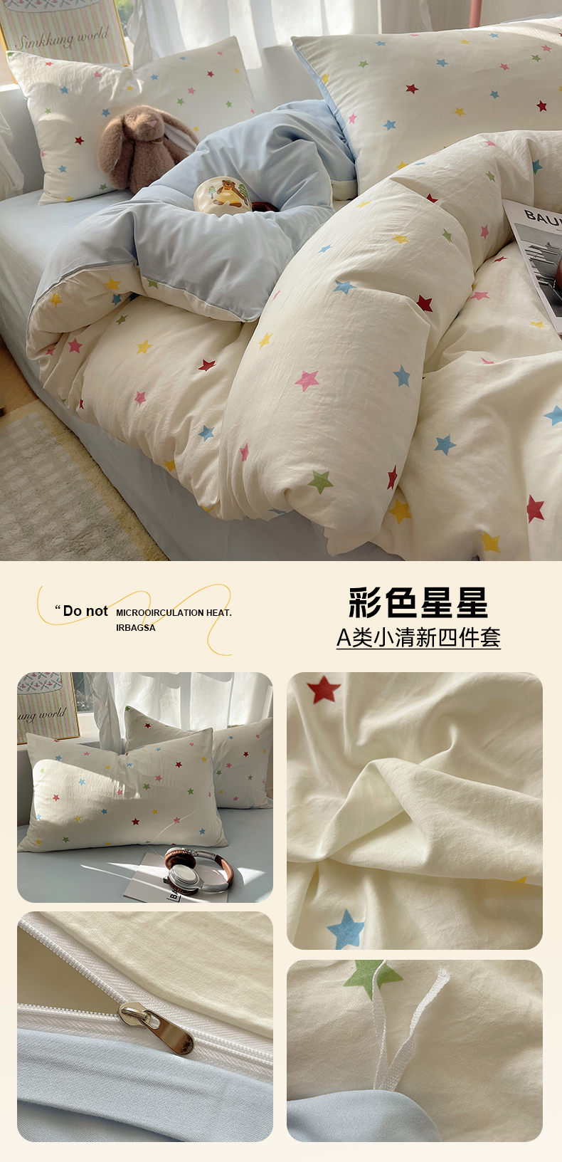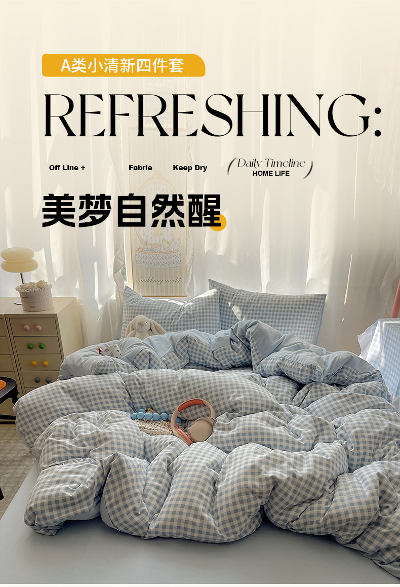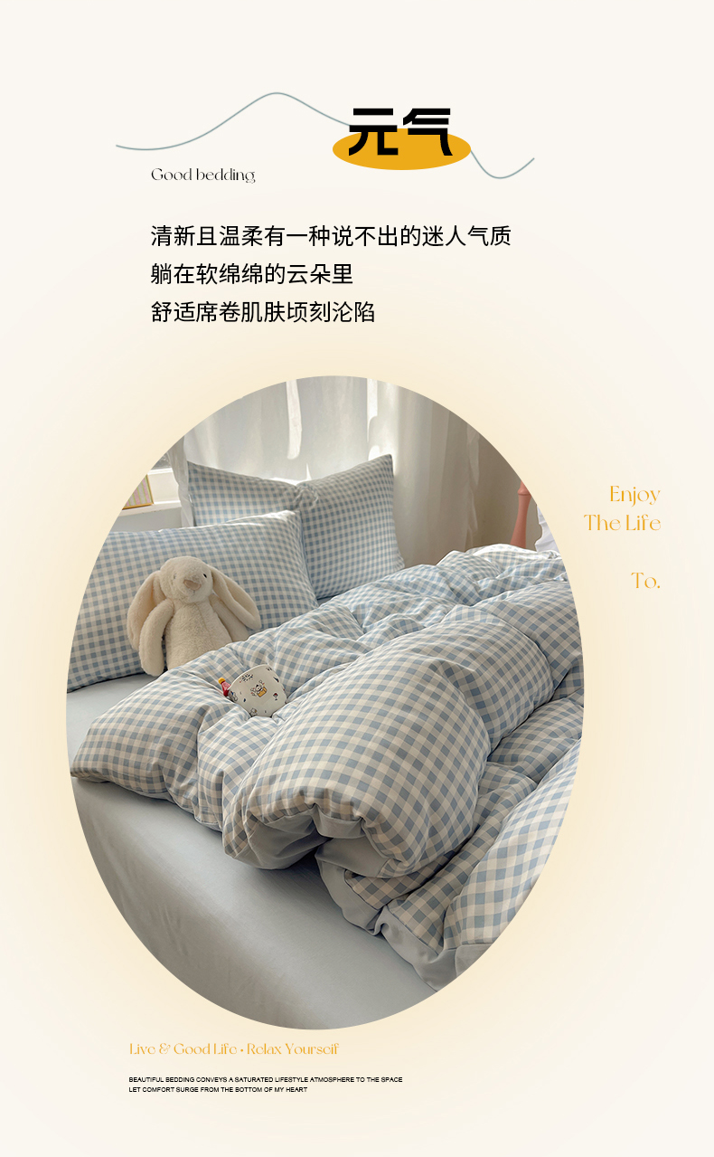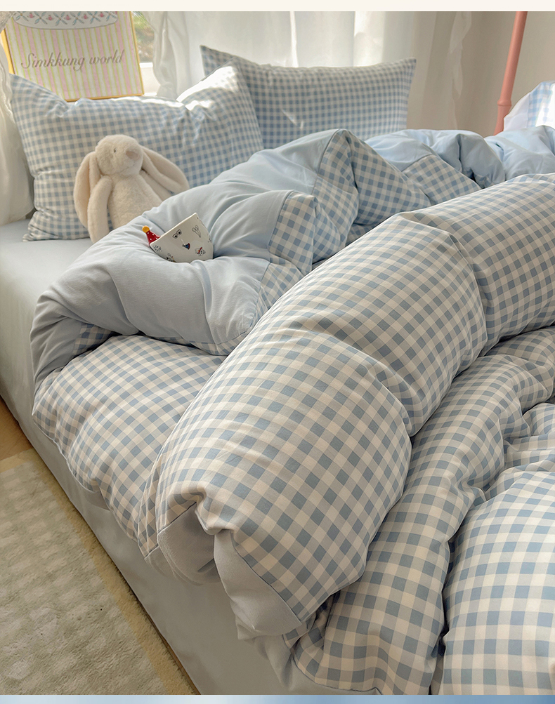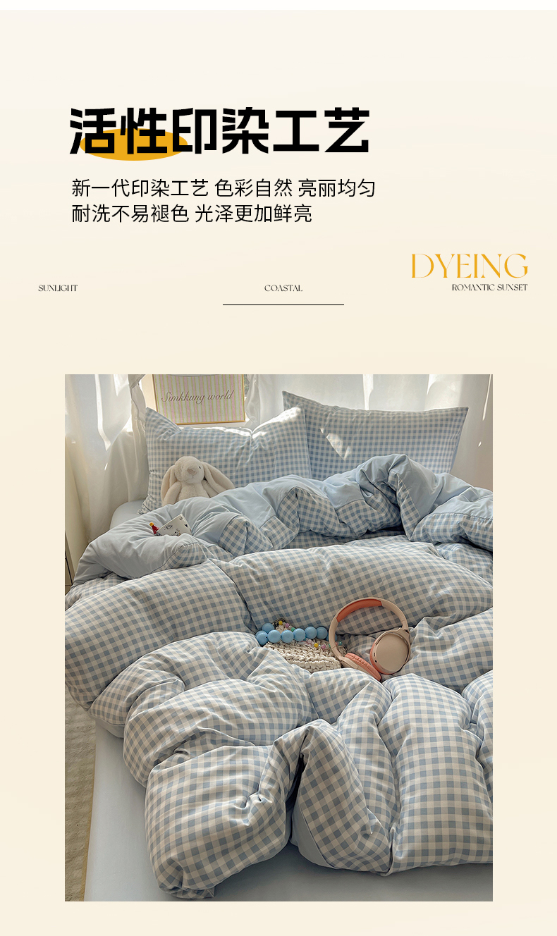 (总)初夏家纺 2026 水洗棉A类105g床上四件套床单被套三件套床笠简约小清新---【提供买家秀】,浅蓝格,波点狗,晕染爱心,彩色星星,风与爱,复古小熊,开心时光,奶味圆饼,浅粉格,小花园