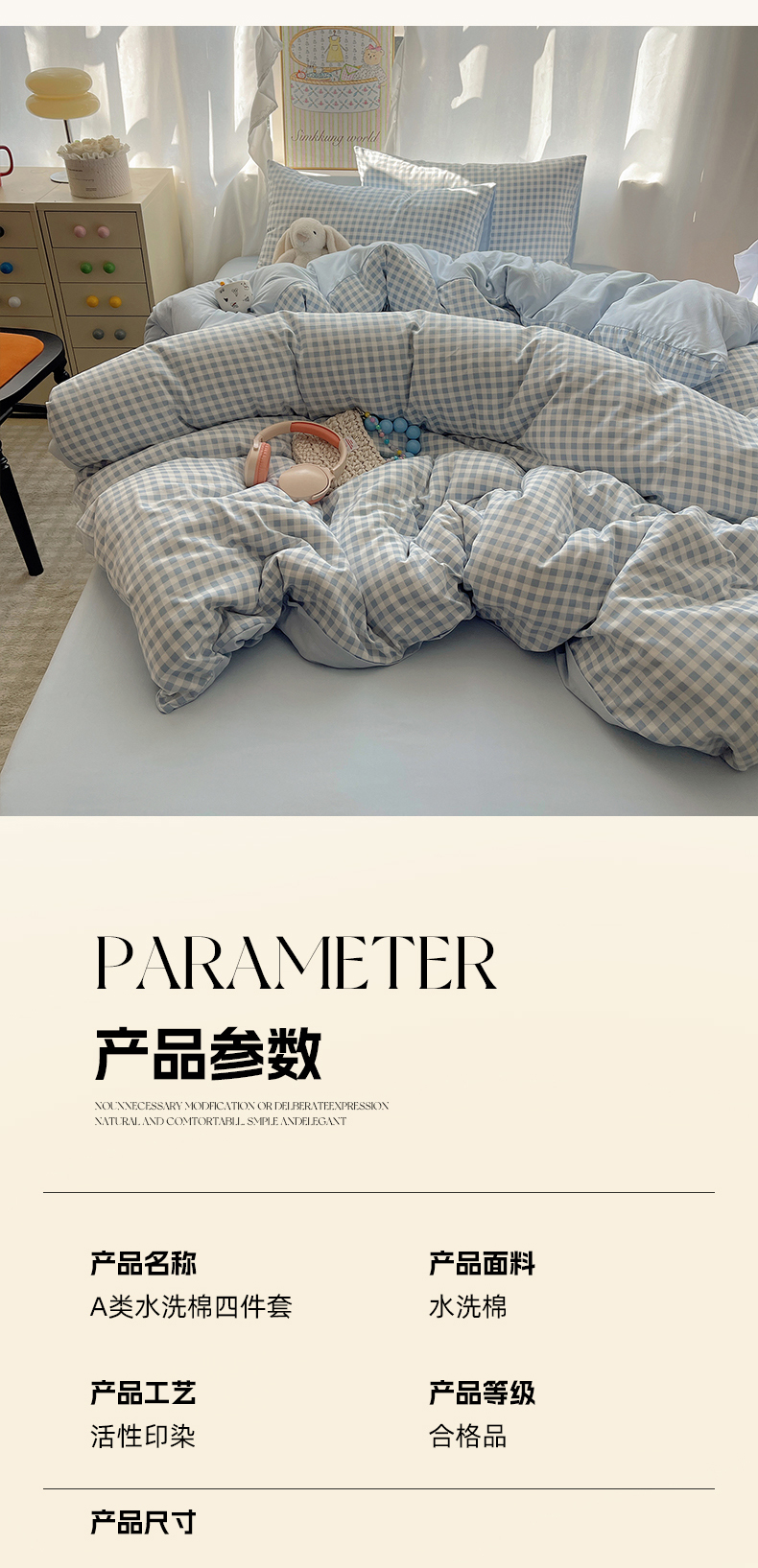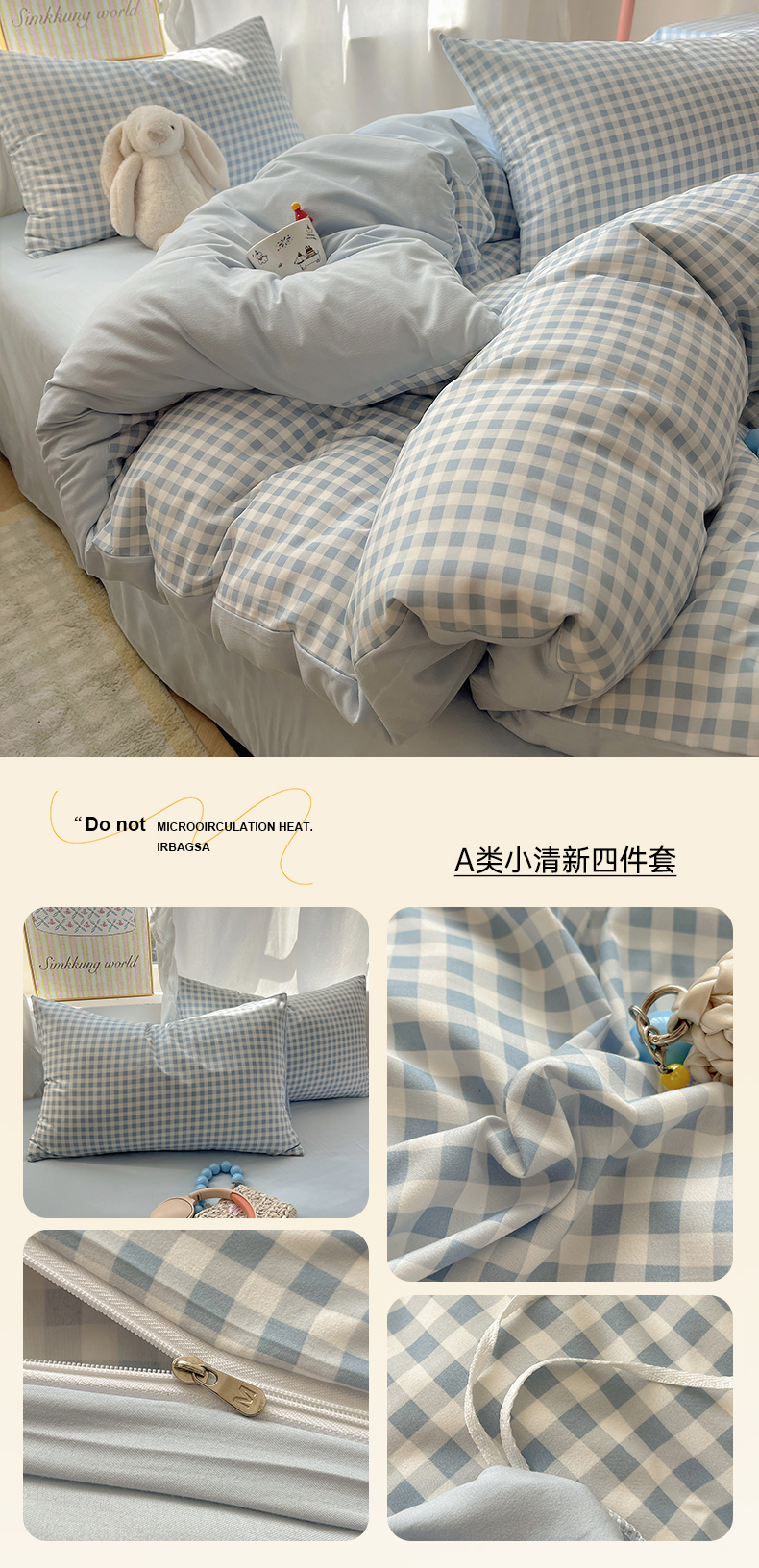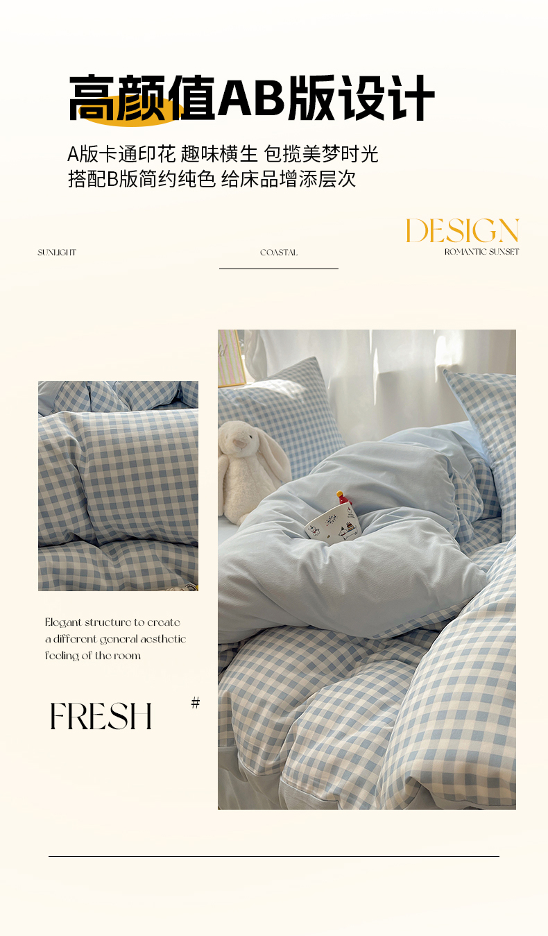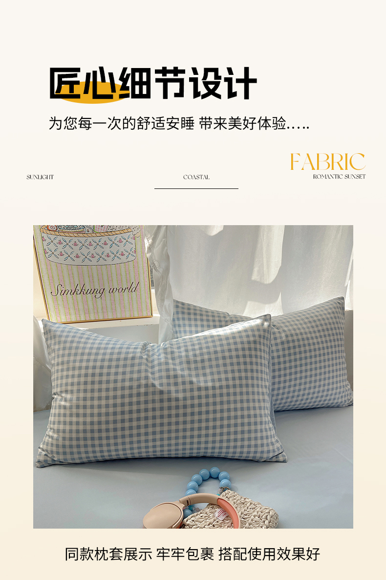 (总)初夏家纺 2026 水洗棉A类105g床上四件套床单被套三件套床笠简约小清新---【提供买家秀】,浅蓝格,波点狗,晕染爱心,彩色星星,风与爱,复古小熊,开心时光,奶味圆饼,浅粉格,小花园