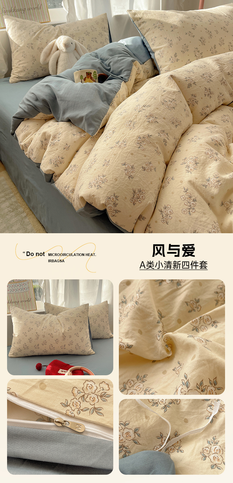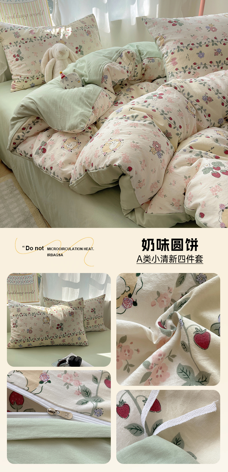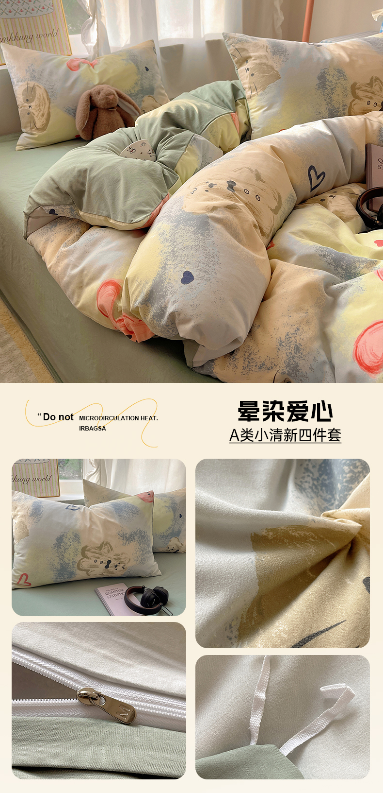 (总)初夏家纺 2026 简约A类水洗棉四件套软糯床上用品被罩床单三件套---【提供买家秀】,海盐拿铁,繁花兔兔,爱情手礼,蛋糕熊熊,安妮的兔,兔野仙踪,汪星蓝町,紫色蝴蝶结