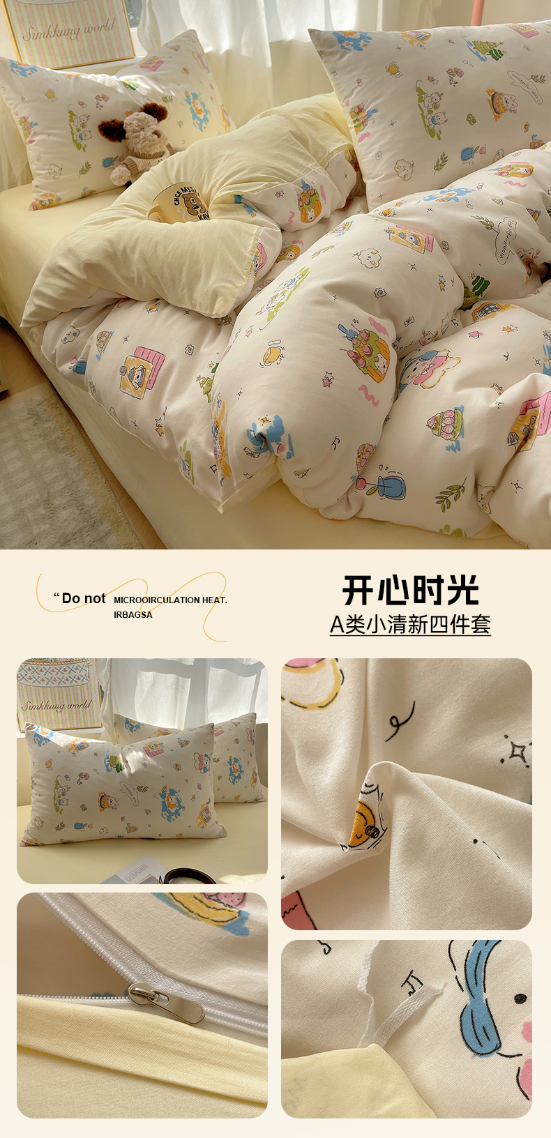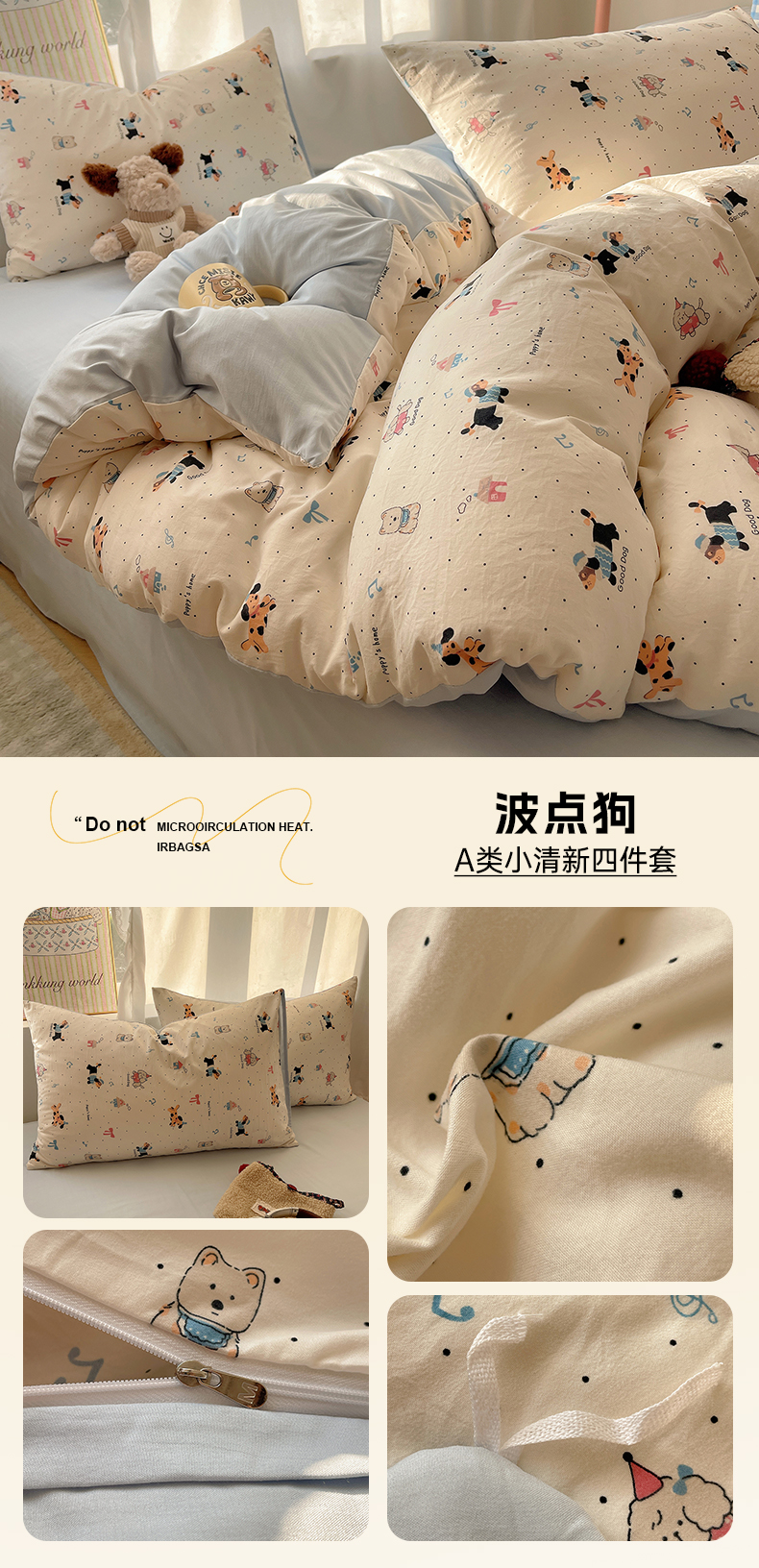 (总)初夏家纺 2026 古法仿棉水洗棉A类四件套被罩床单三件套床上用品卡通可爱【提供买家秀】,蓝调序曲,豹纹音乐,波点汪语,草莓啵啵,花屿庄园,灰度情书,家园,假日萌犬,猫咪甜点屋,毛绒熊仔,萌犬游记,暖意小熊,甜心紫熊,兔耳朵,樱桃物语,雨沫