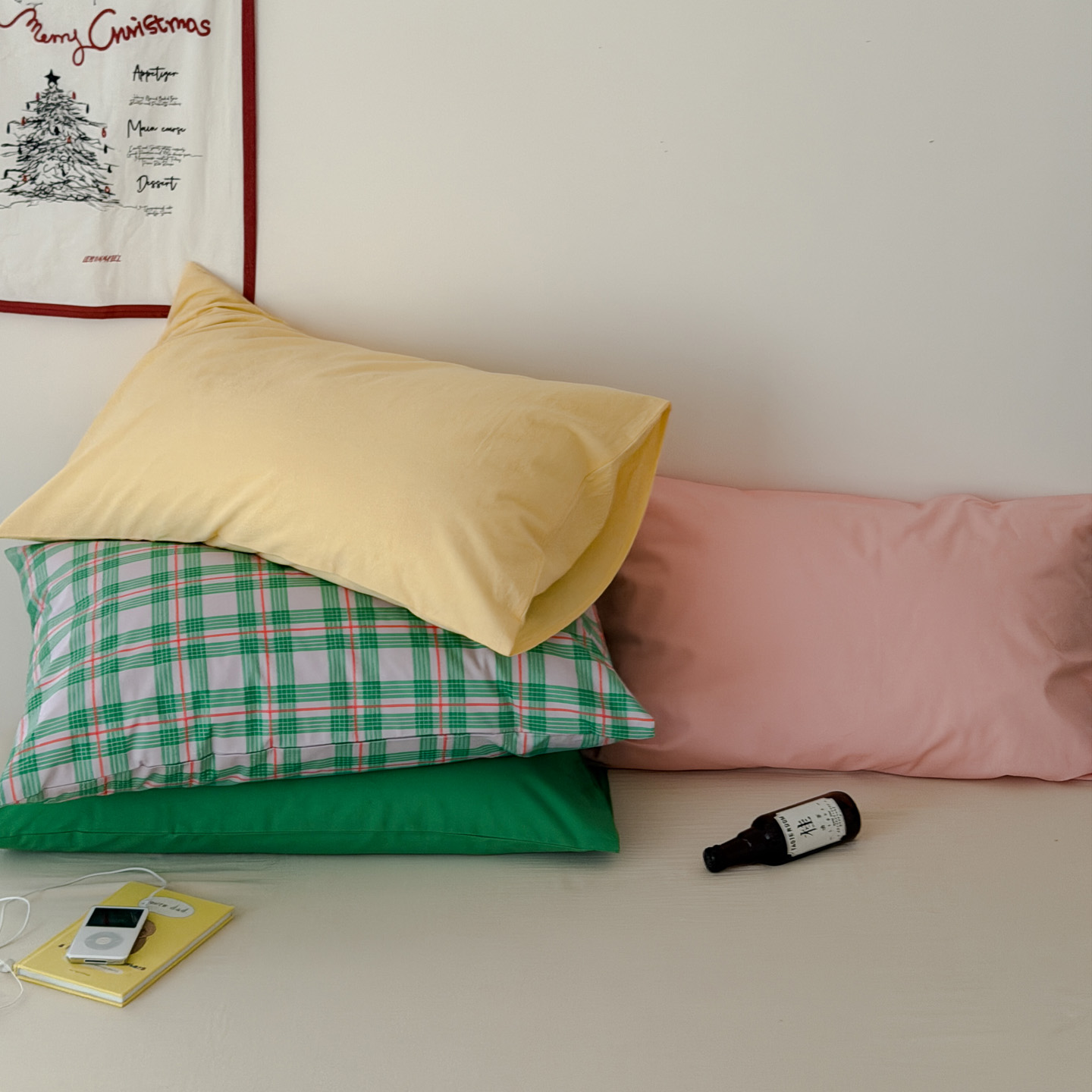 (总)艾沁2025新款全棉色织水洗棉西瓜色撞色四件套,西瓜派对(枕套红格+黄色),西瓜派对(枕套红格+绿色),西瓜派对(枕套绿色+黄色),西瓜派对(枕套樱桃一对)