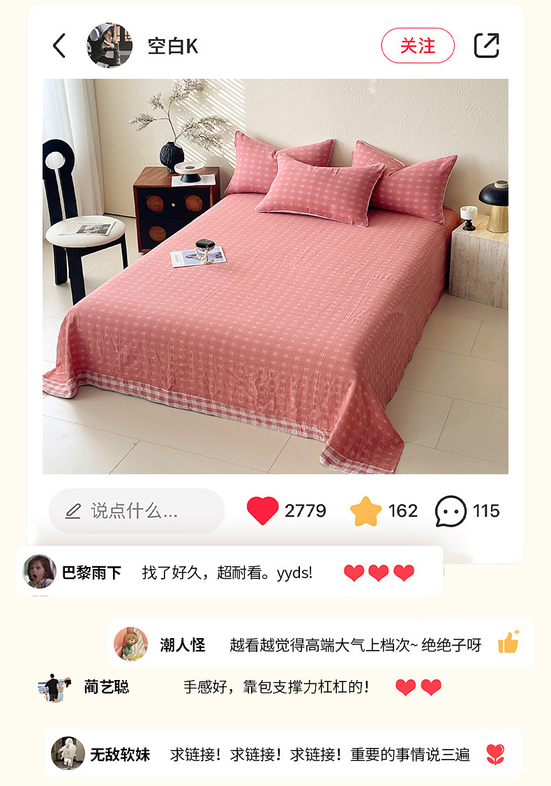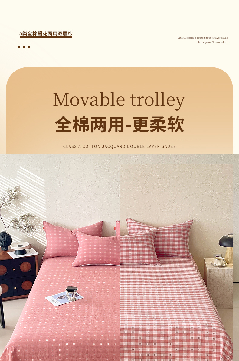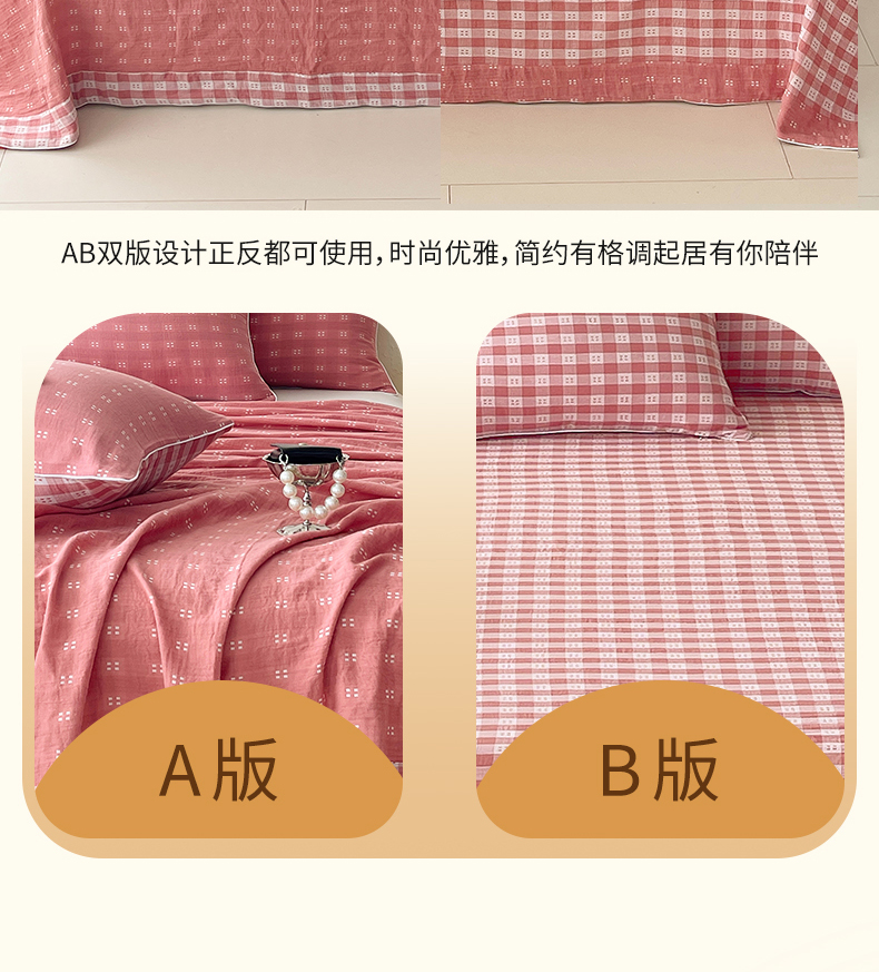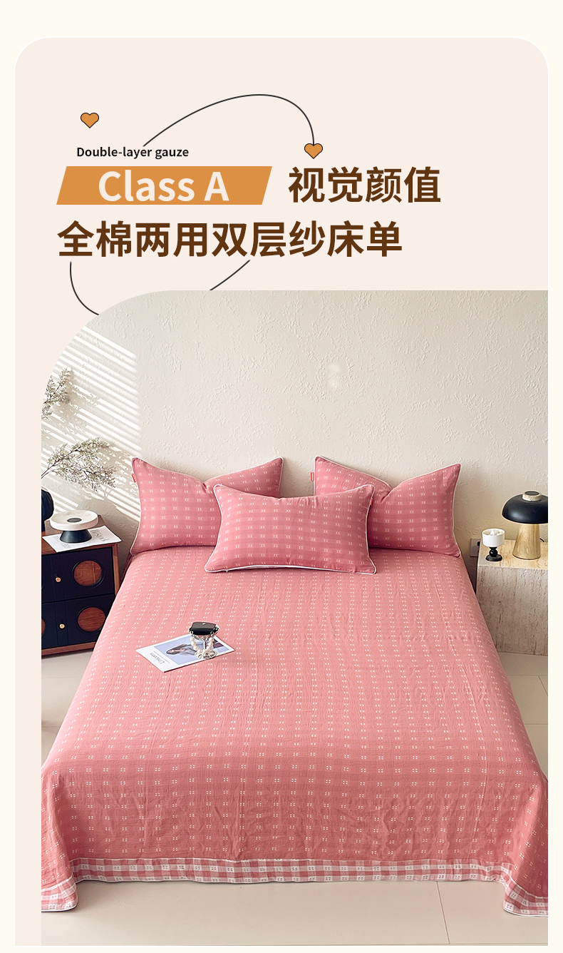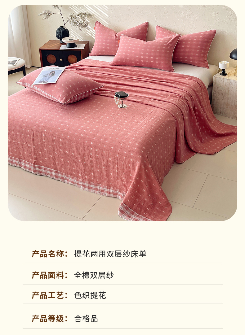 商品名称:春皖家纺 2026春夏新款(正反两用)A类提花双层纱单床单 思柔-粉红