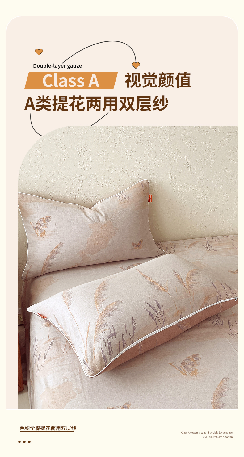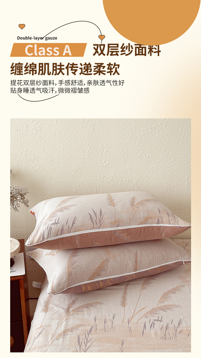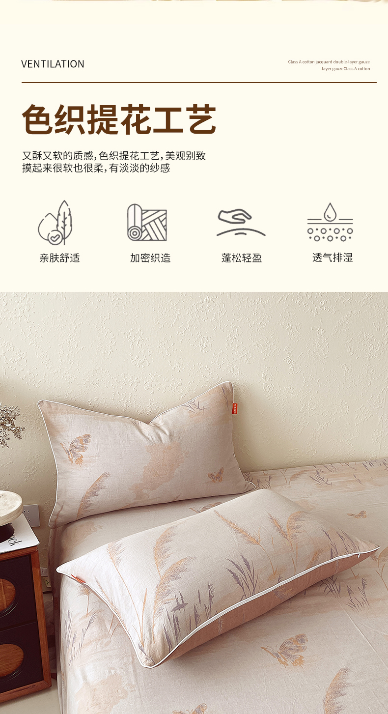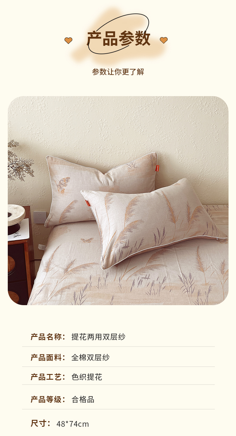 春皖家纺 2026春夏新款(正反两用)A类提花双层纱单枕套 瑾璃