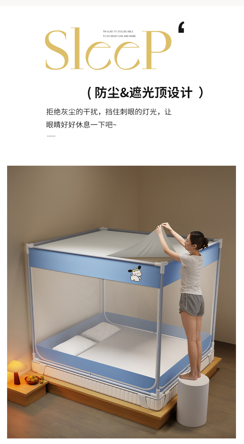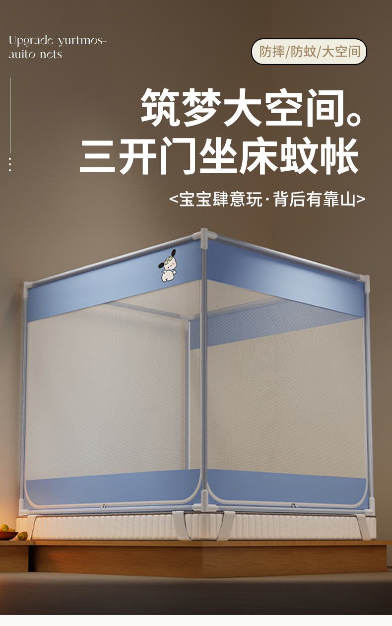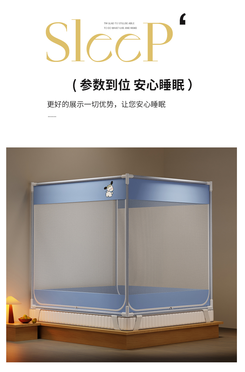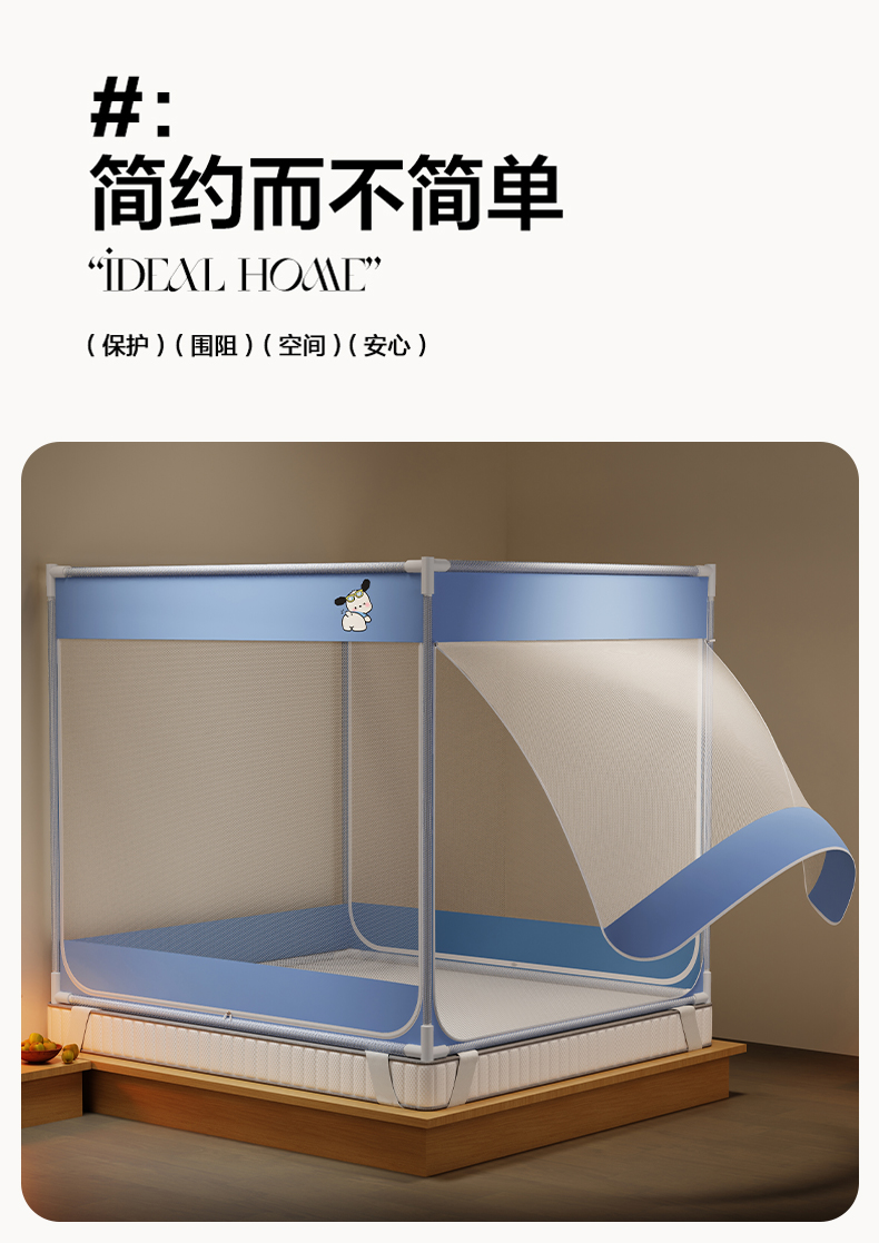 当前位置: 91家纺网 > 商品网购 > 床上用品 > 蚊帐 > 坐床式蚊帐 > 初心家纺 2026新款外穿杆坐床防摔蚊帐-场景一 蓝-帕恰狗
