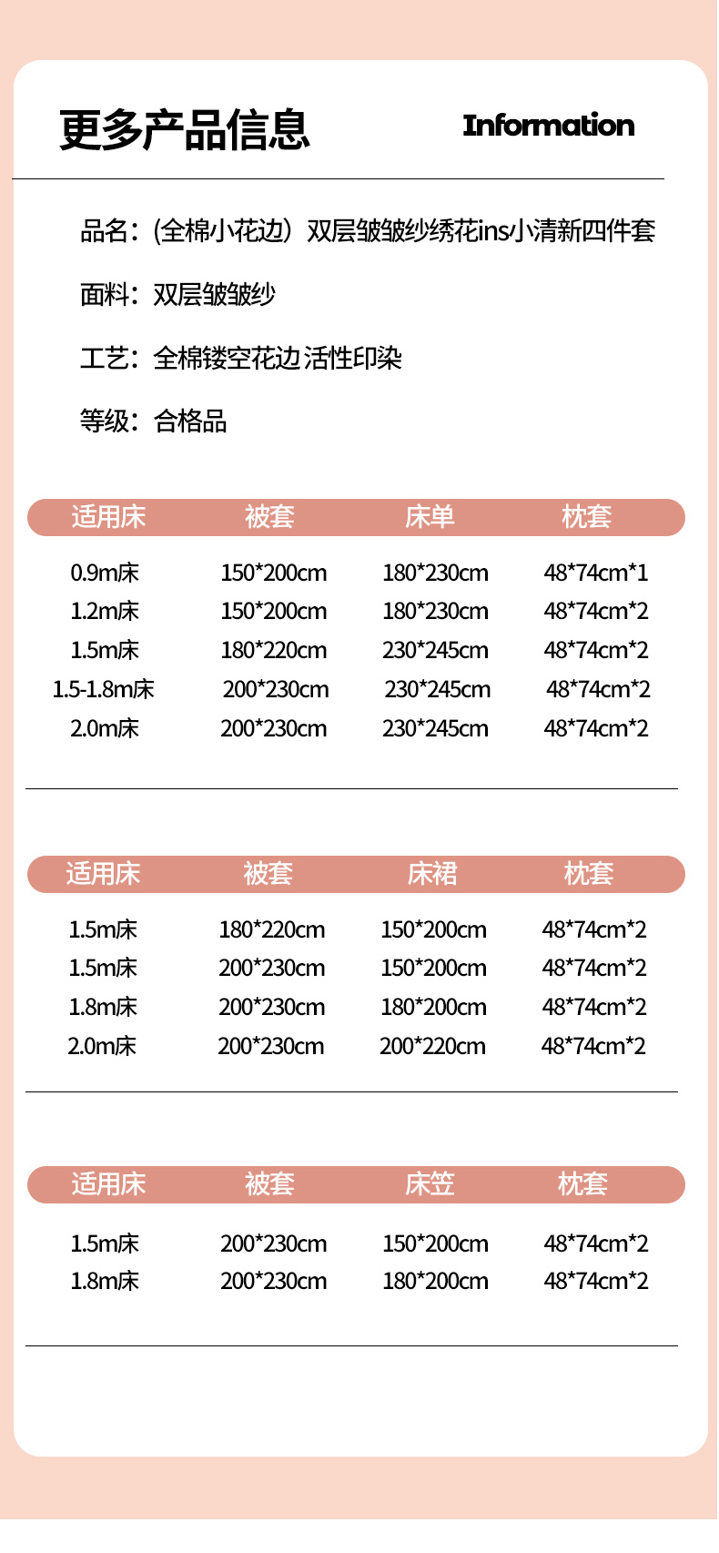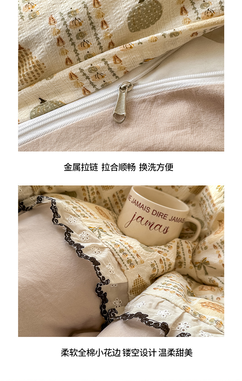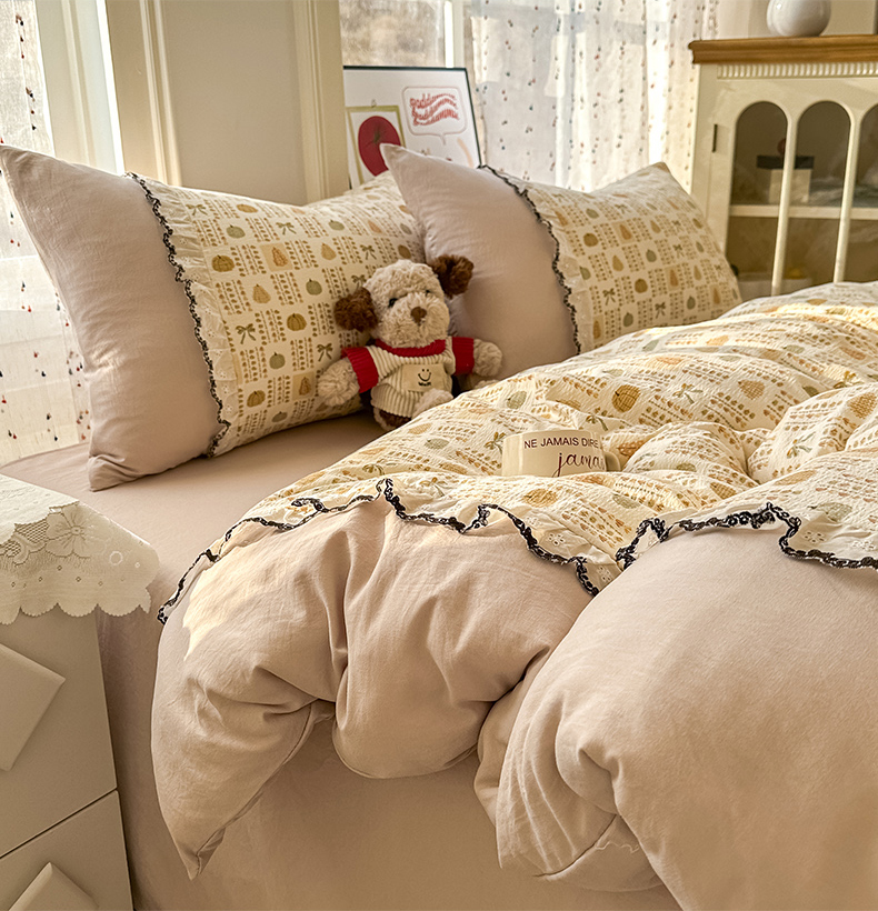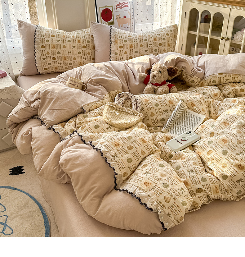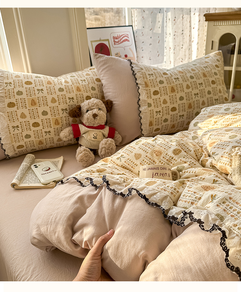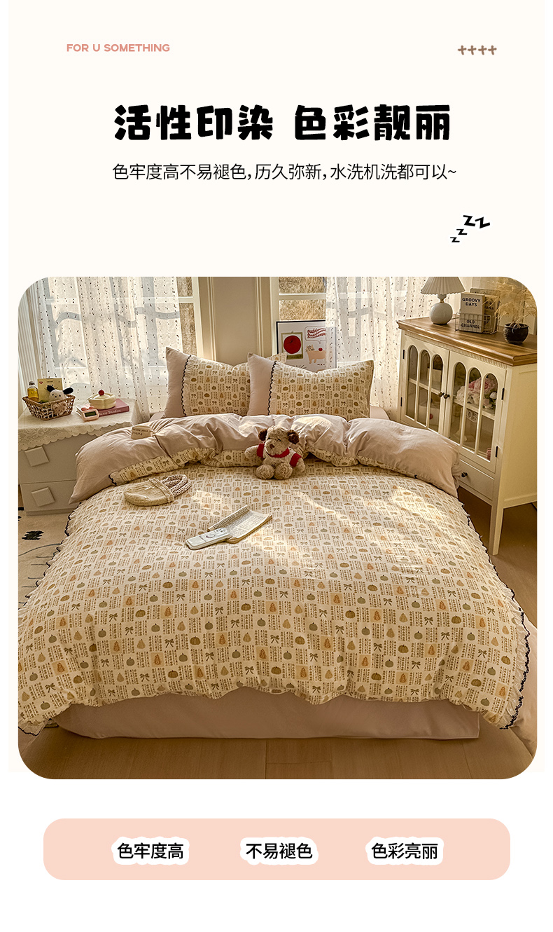 当前位置: 91家纺网 > 商品网购 > 床品套件 > 四件套 > 水洗棉四件套 > 贝凯瑞 2026新款小花边水洗棉绣花ins小清新床单床裙床笠四件套 水果派对