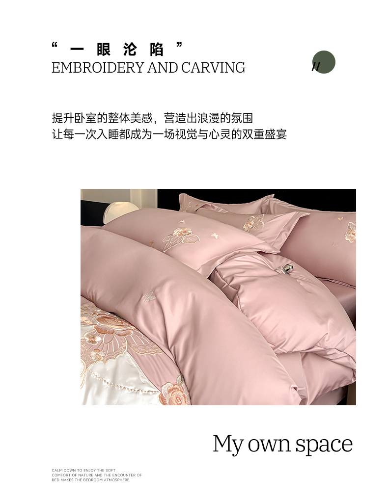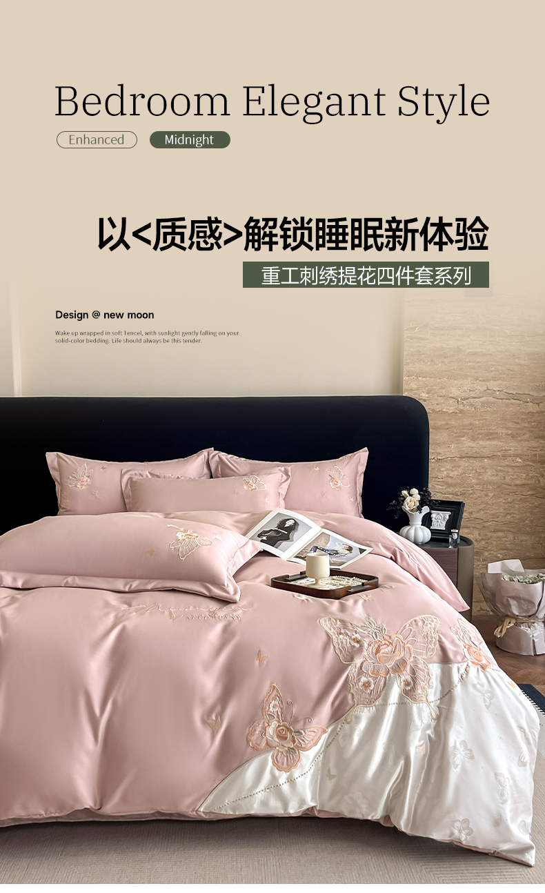 金牛座家纺 2026新款细斜纹亮丝提花贴布绣重工刺绣四件套-潘妮系列 潘妮-浅豆沙
