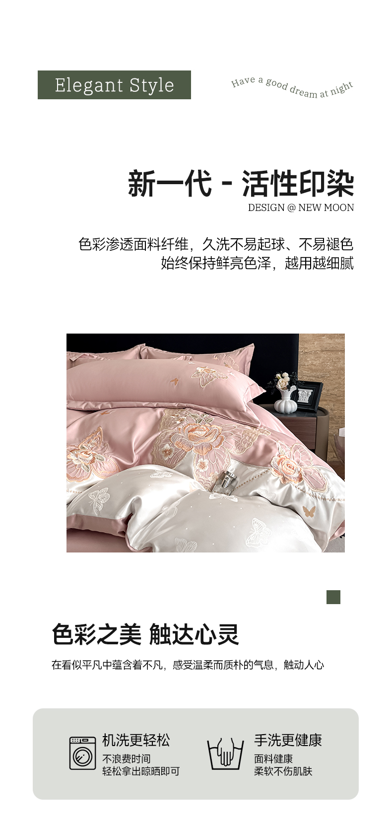 (总)金牛座家纺 2026新款细斜纹亮丝提花贴布绣重工刺绣四件套-潘妮系列,潘妮-薄荷绿,潘妮-灰,潘妮-嫩粉,潘妮-浅豆沙,潘妮-浅紫
