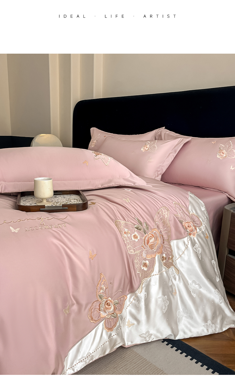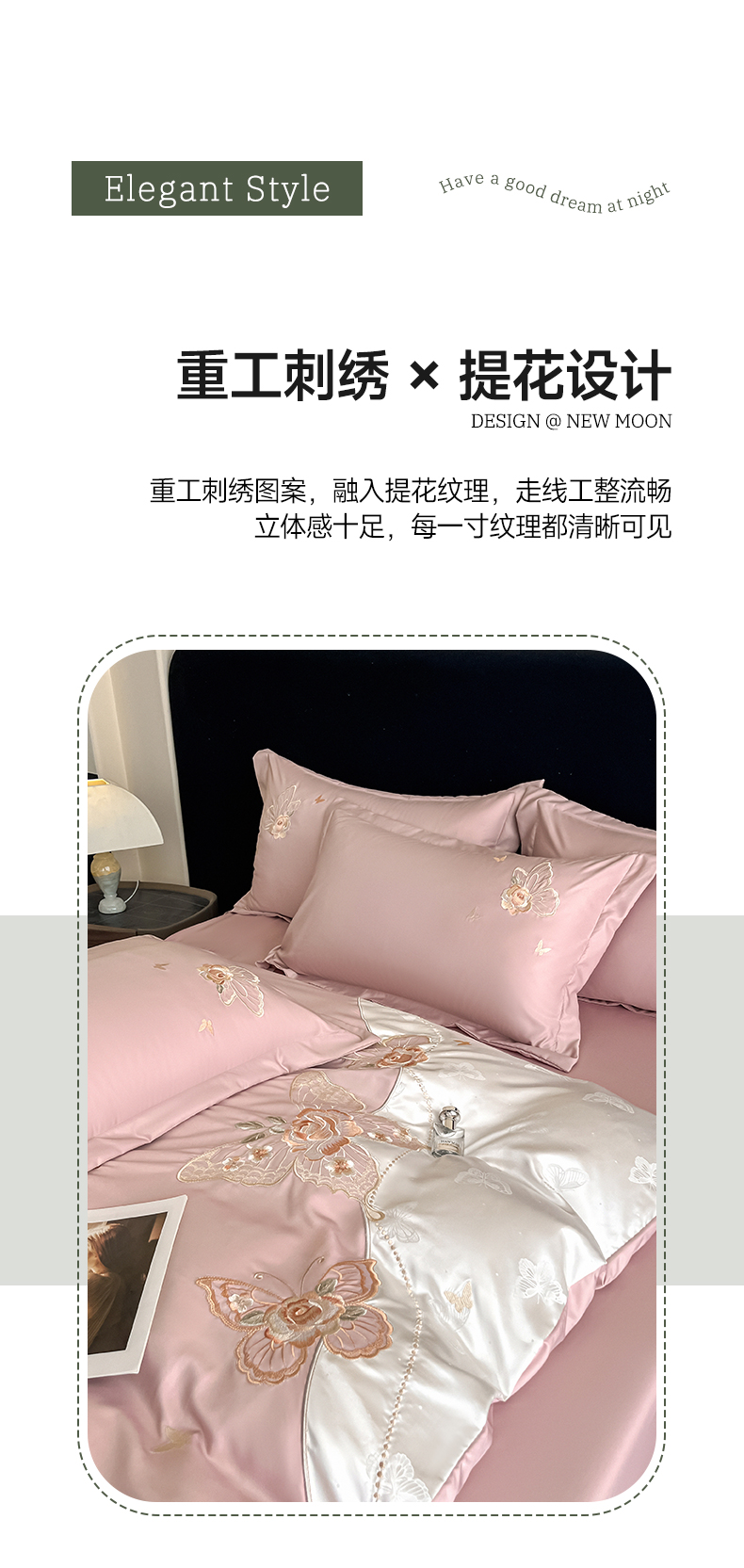 (总)金牛座家纺 2025新款加厚牛奶绒重工刺绣贴布绣四件套-蝶恋花,蝶恋花-嫩粉,蝶恋花-浅灰,蝶恋花-浅紫,蝶恋花-雾蓝,蝶恋花-杏色