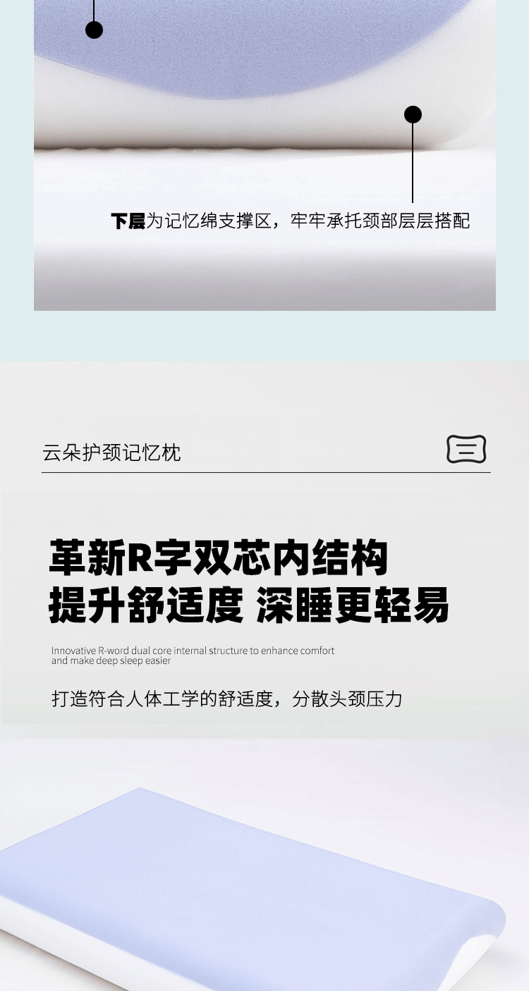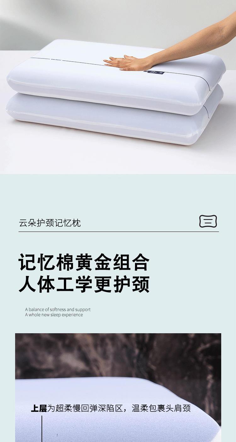 当前位置: 91家纺网 > 商品网购 > 枕头/枕芯/保健枕/颈椎枕 > 枕头枕芯 > 忆之朵枕业 2026新款云朵护颈记忆枕 枕头枕芯 拼色(有枕套)8cm/只