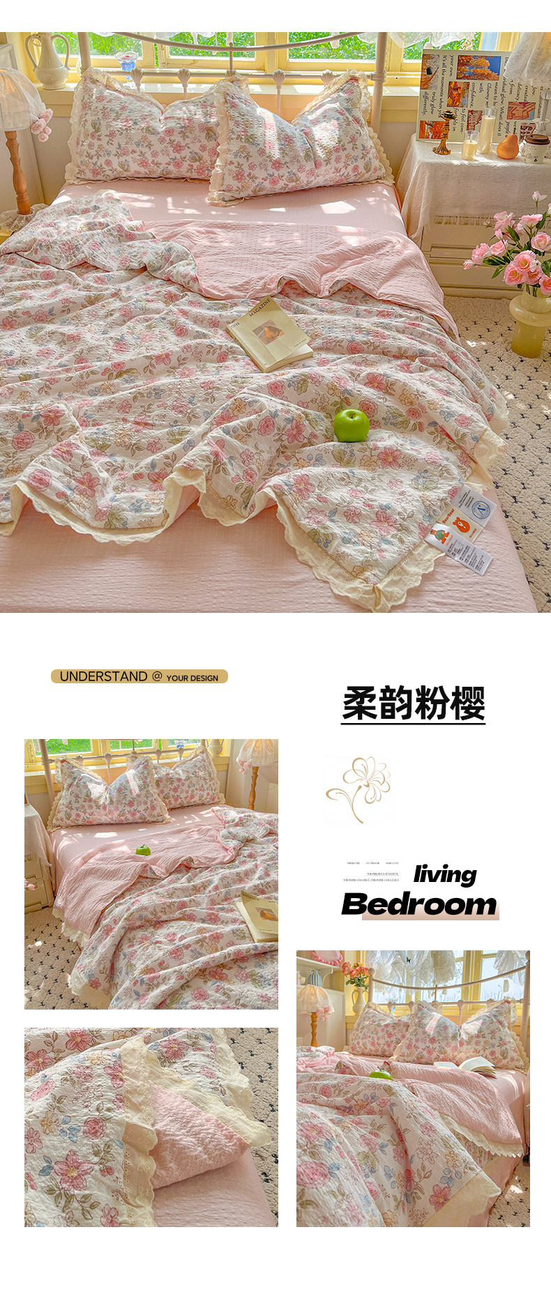 (总)金梦拉家纺 2026新款皱皱纱泡泡纱法式赫本系列床盖大花边四件套夏被四件套,黑暗荣耀,山樱漫岛,字母星河,樱桃记忆,心之光,少女心事,四叶草,墨染星辰