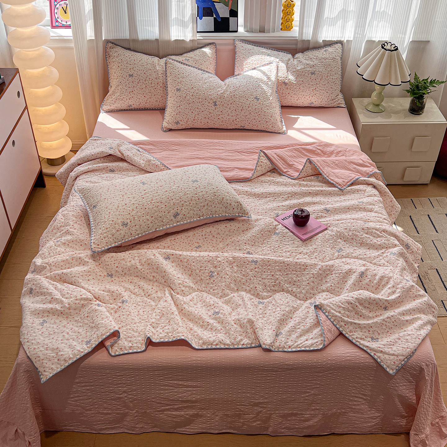(总)2026新款云感皱皱纱全棉花边款夏被四件套,百福兰,春天里,春晓,豆蔻,蝴蝶梦,可颂,兰黛,山野栀子,素颜,太妃糖,微凉薄荷,心动,遇见,芝士奶酪,紫爱心,紫苏,白茶绿,初恋,蜡笔画,莱茵河畔,桃花诺,小黑兔,春不晚,春日小熊,可颂,陌上花开,莫奈,若欢-绿,若欢紫色,舒芙蕾,田园拾趣-黄,兔小姐,郁金香小兔,波点小兔粉,波点小兔兰,花园兔,情人节,山野栀子,十里桃花粉,十里桃花紫,舒芙蕾,太妃糖,夏天,运动健将熊, 白月光,缤纷几何,格格西高地,海盐蓝小格,黎漫,木槿绿,奶油泡芙,欧若拉,桃夭,甜茶,小晴天,芋泥紫小格,紫色蝴蝶结