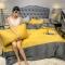 润缦 2020新款水洗真丝四件套双拼系列 姜黄+绅士灰