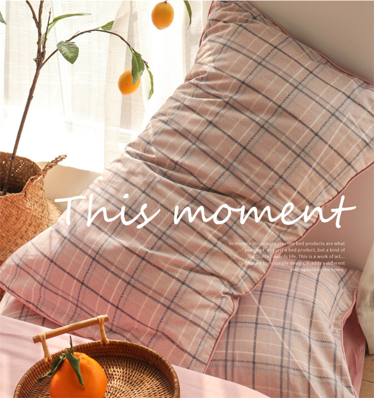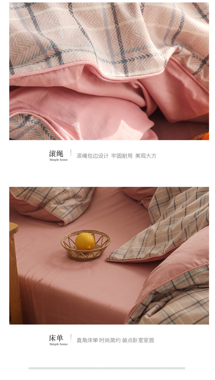 澳萝拉 2020新款13372全棉滚边格子款四件套 淡粉格