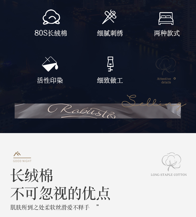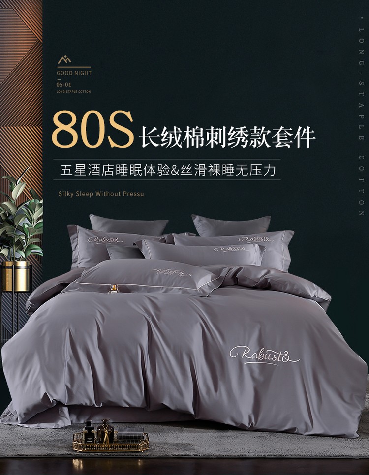 80支埃及长绒棉时尚绣四件套全棉四件套