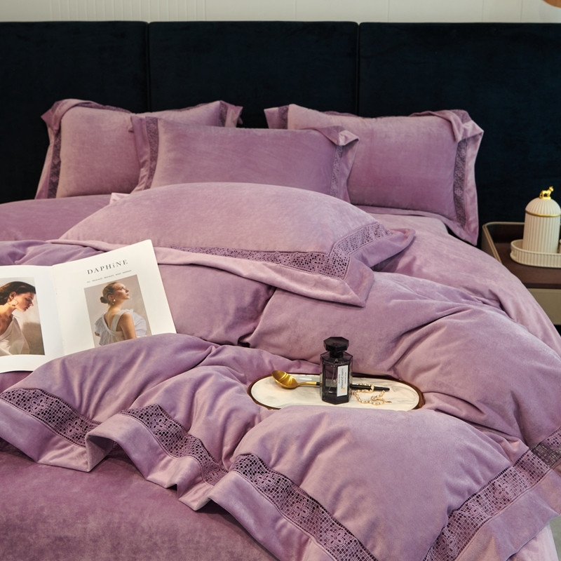 榻尚 2023新款婴肤绒镂空工艺四件套-柔梦系列 嫣然紫